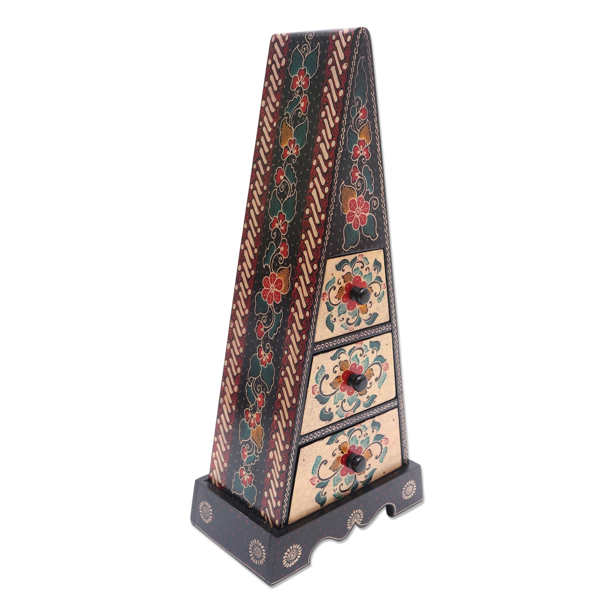 Novica Handmade Pyramid of Flowers Decorative Batik Wood Box