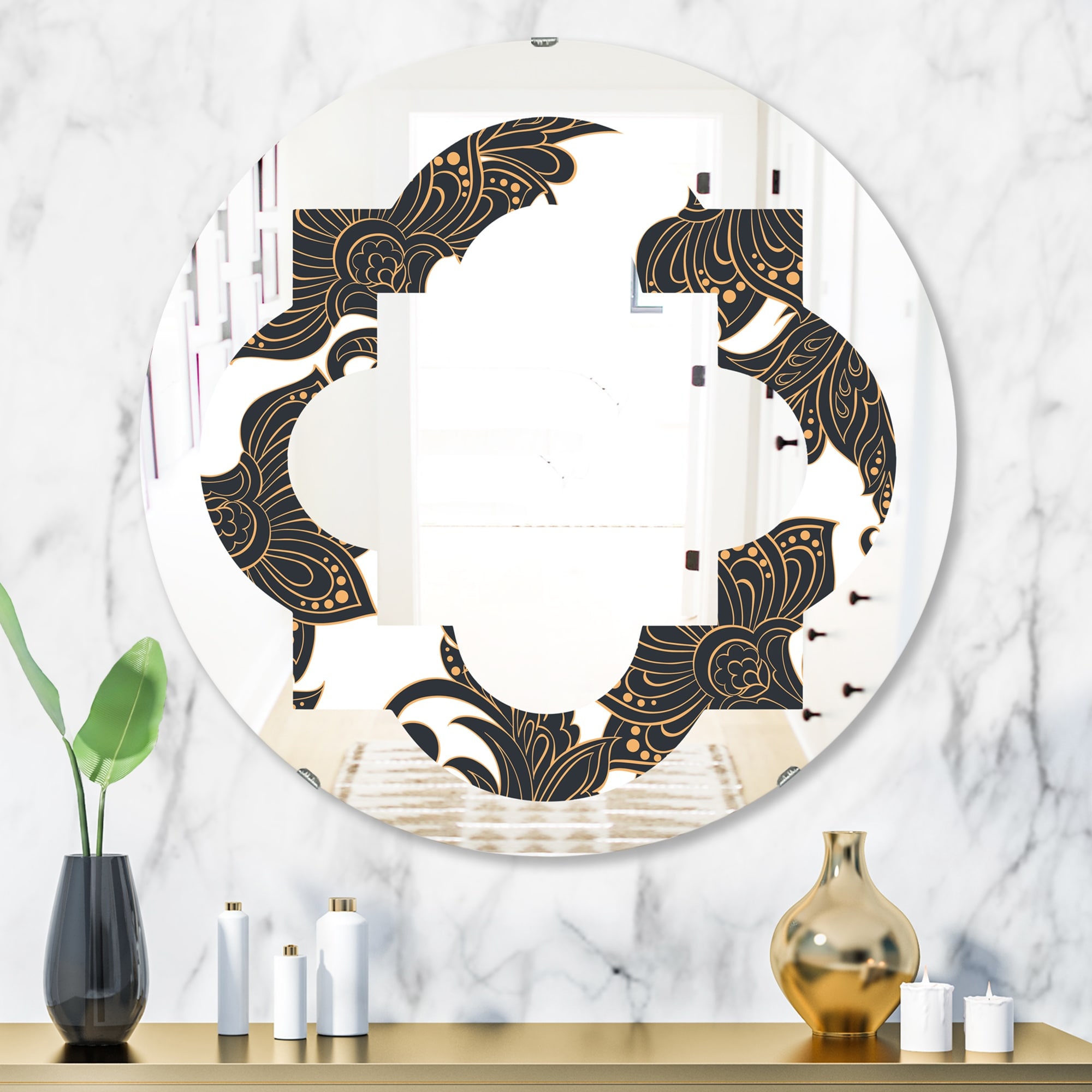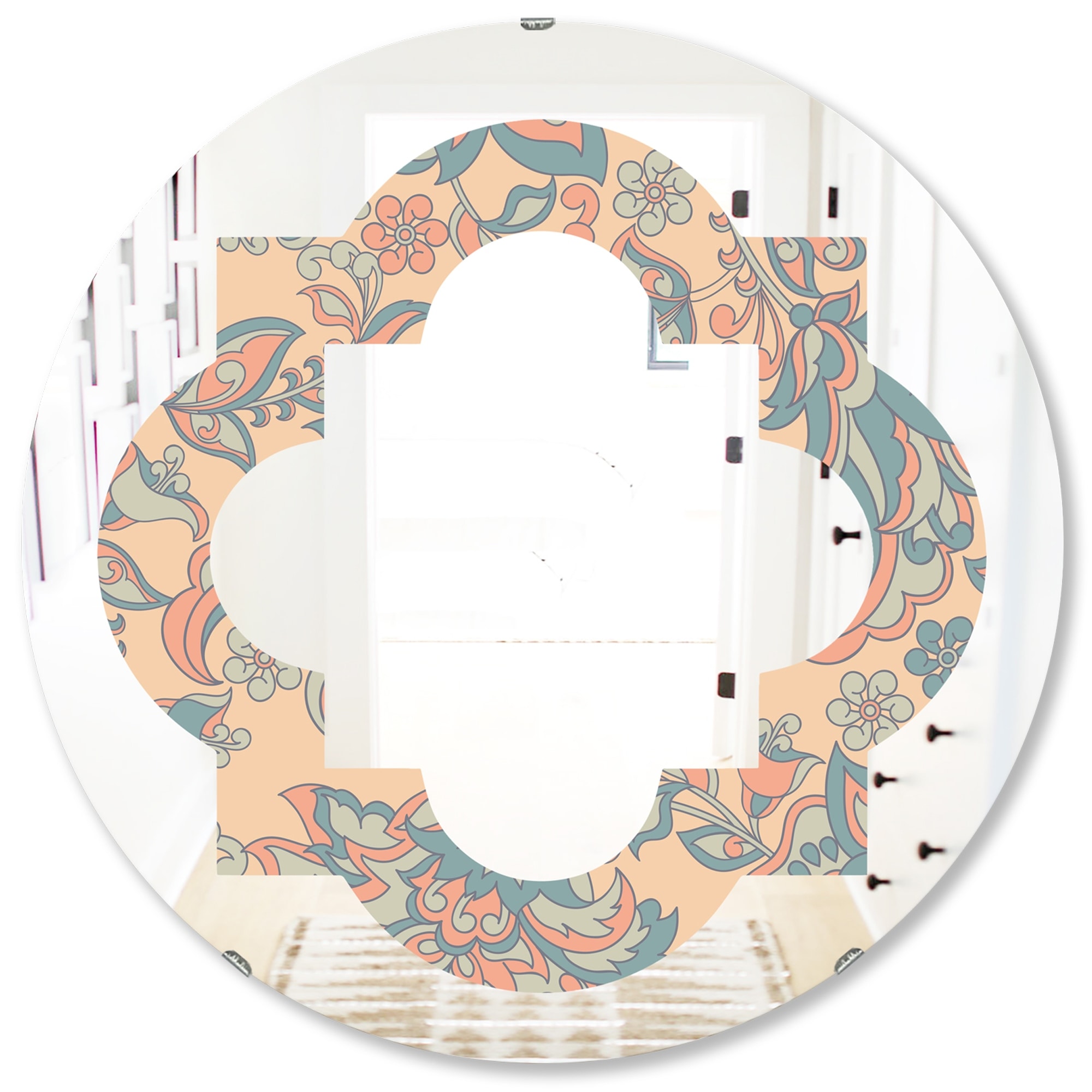 Designart 'Retro Indian Floral Batik II' Printed Modern Round or Oval Wall Mirror - Quatrefoil