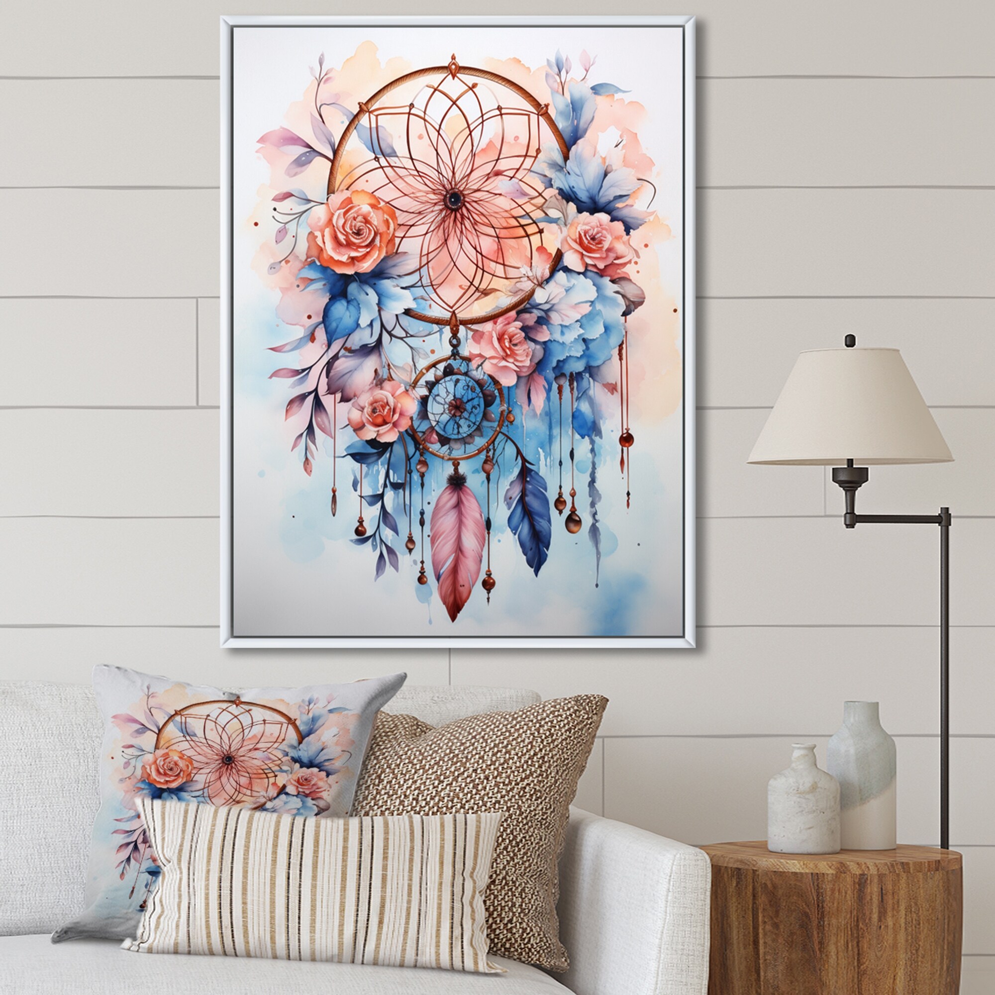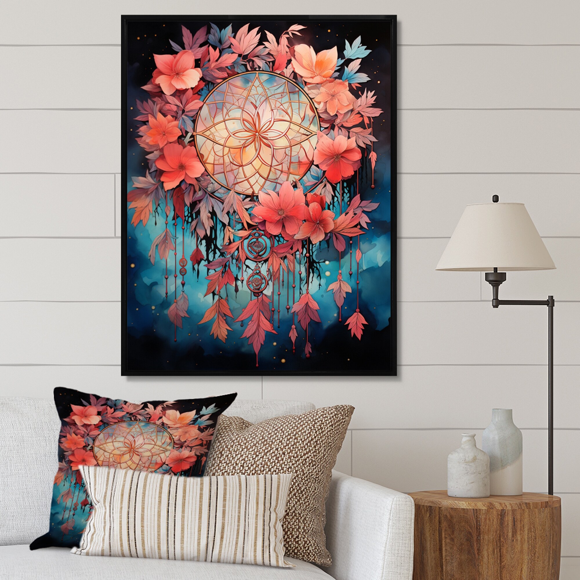 Designart "Coral Dreamcatcher Ethereal Enchantment" Dream catcher Framed Canvas Print