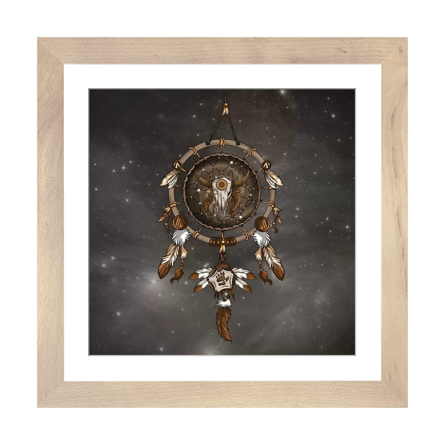 Designart "Dream Catcher With Ethnic Feathers" Bohemian & Eclectic Framed Art Print