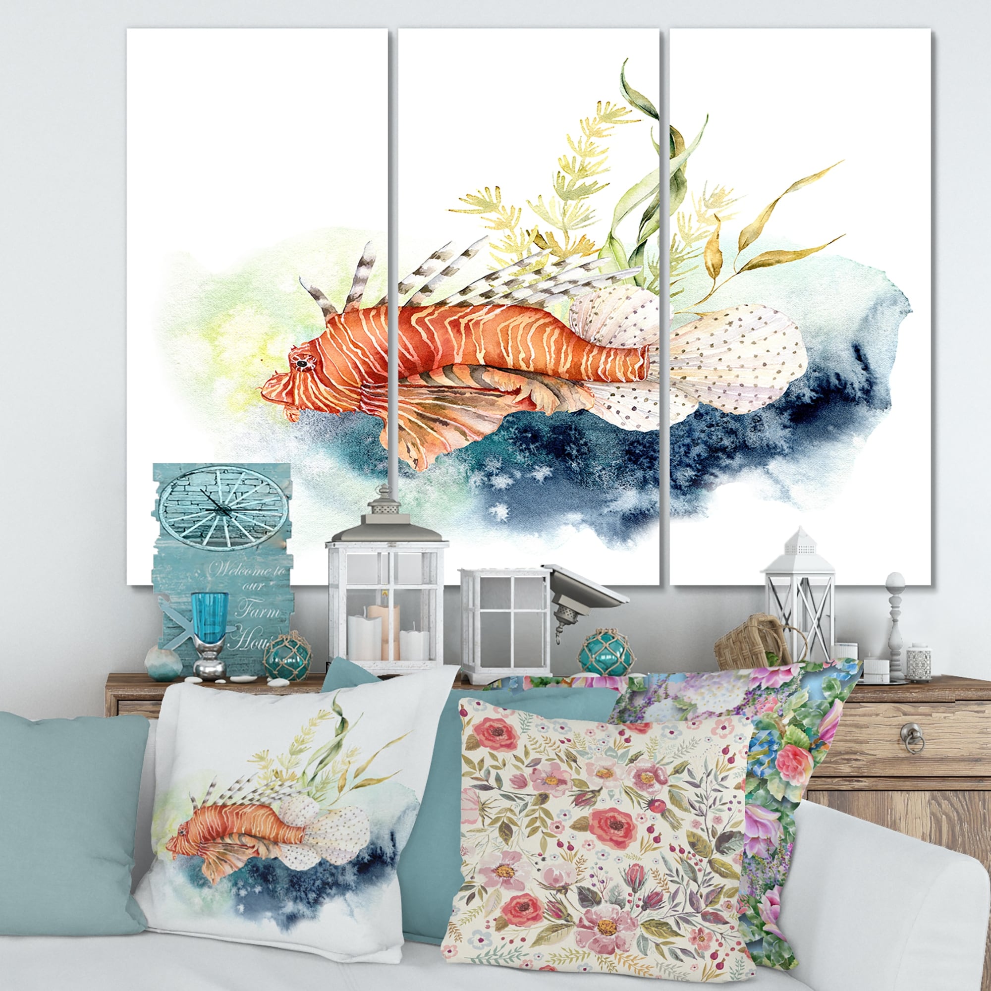 Designart "Lionfish and Kelp With Coral Reef and Laminaria" Nautical & Coastal Canvas Wall Art Print