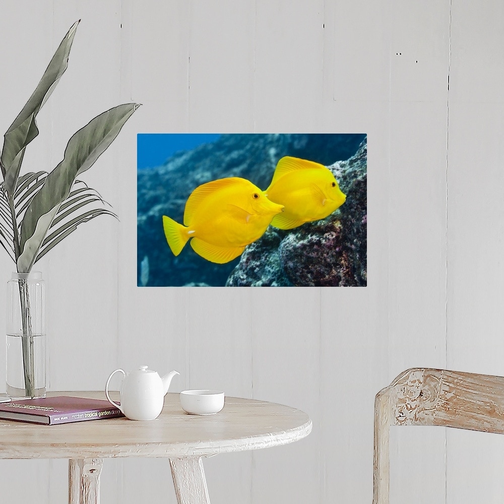 "A Pair of Yellow Tangs swimming over a tropical coral reef. Pacific Ocean, H" Poster Print - Multi