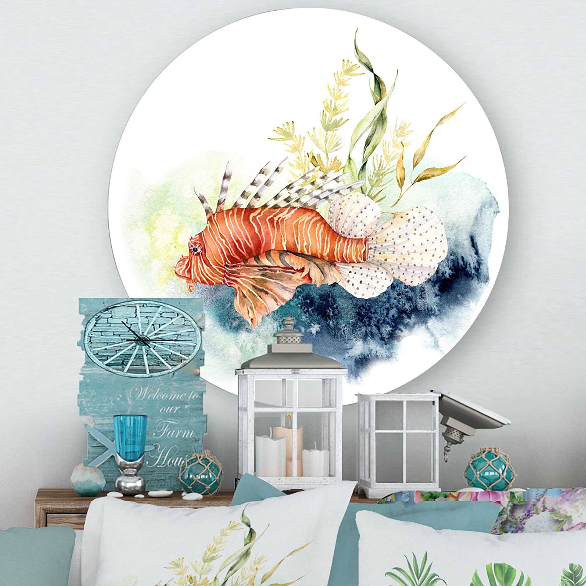 Designart 'Lionfish and Kelp With Coral Reef and Laminaria' Nautical & Coastal Metal Circle Wall Art