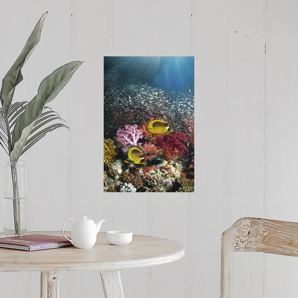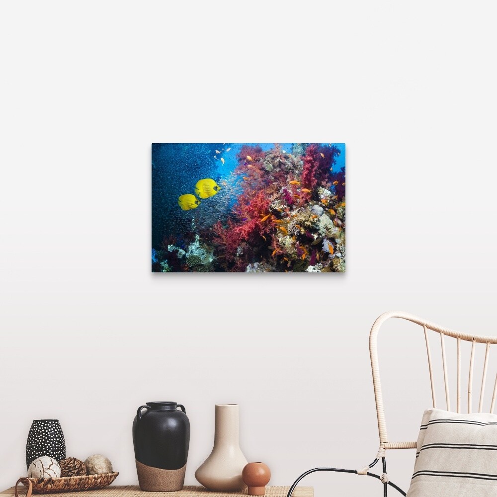 Easy Art Prints Panoramic Images's 'Coral Reef and School of Fish, Undersea view' Premium Canvas Art