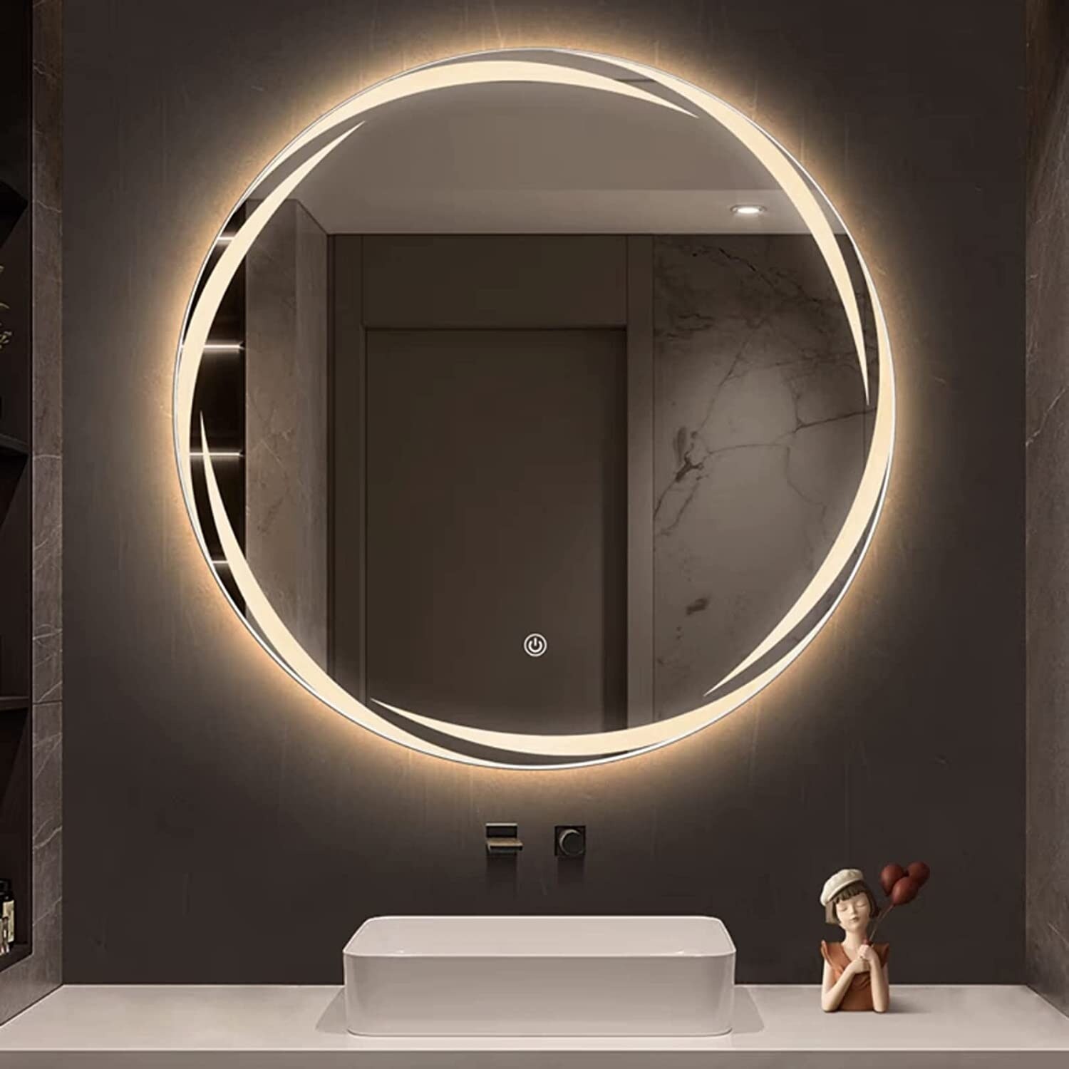 Round Wall Mirror with LED Lights, 50cm/60cm/70cm/80cm Illuminated Bathroom Mirror, 3-Color Infinitely Dimmable, IP44