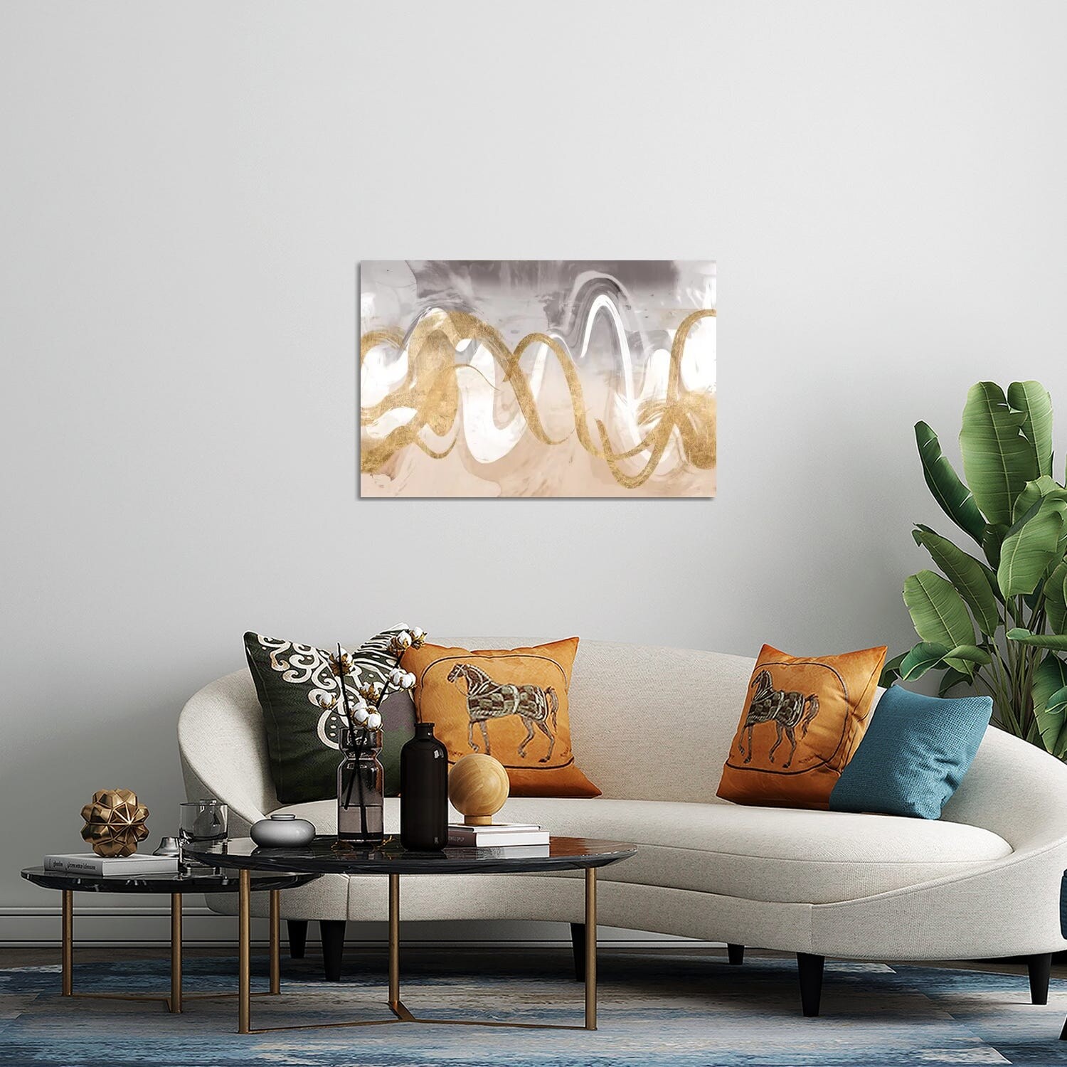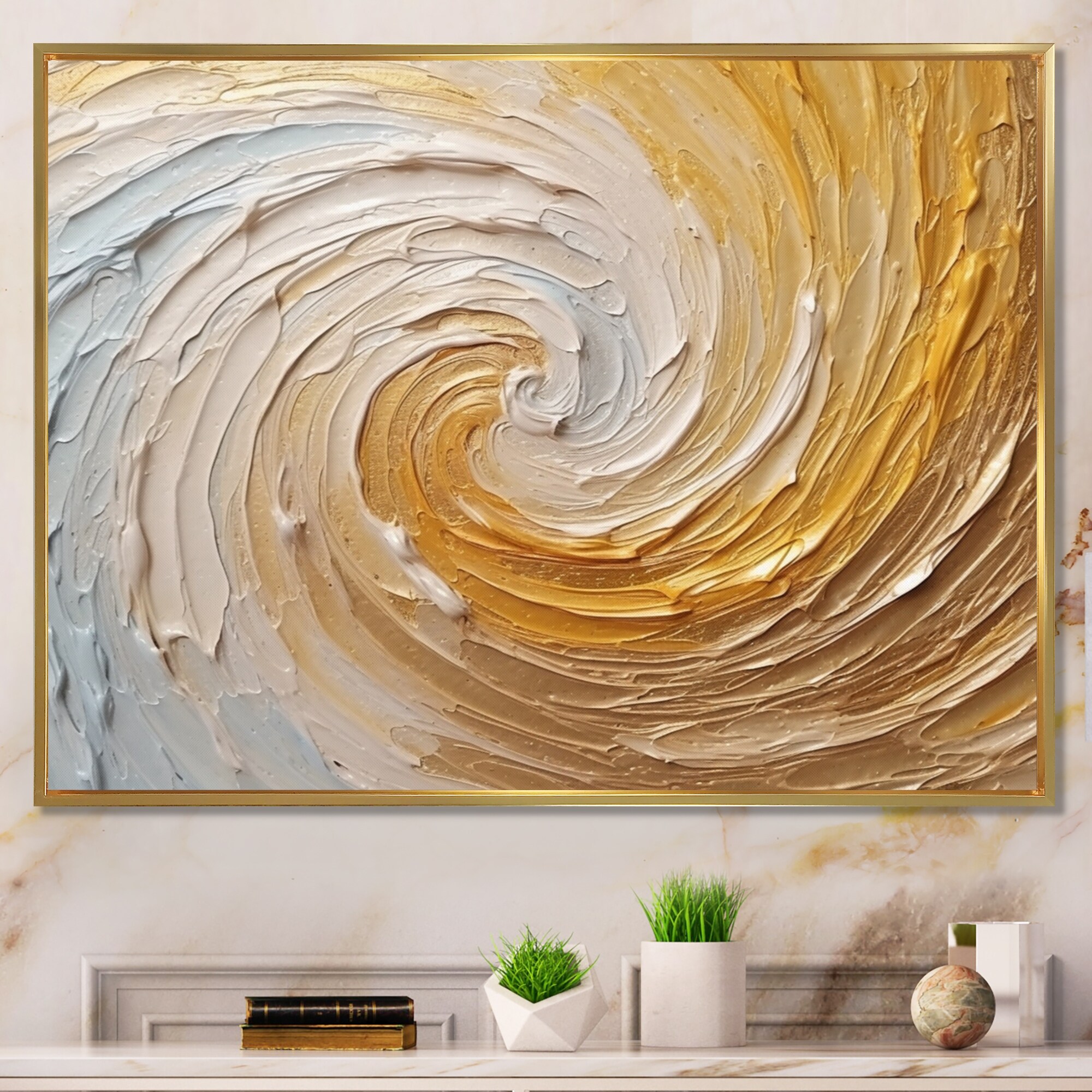 Designart "Gold Cream Infinite Swirls I" Abstract Spirals Framed Canvas Print