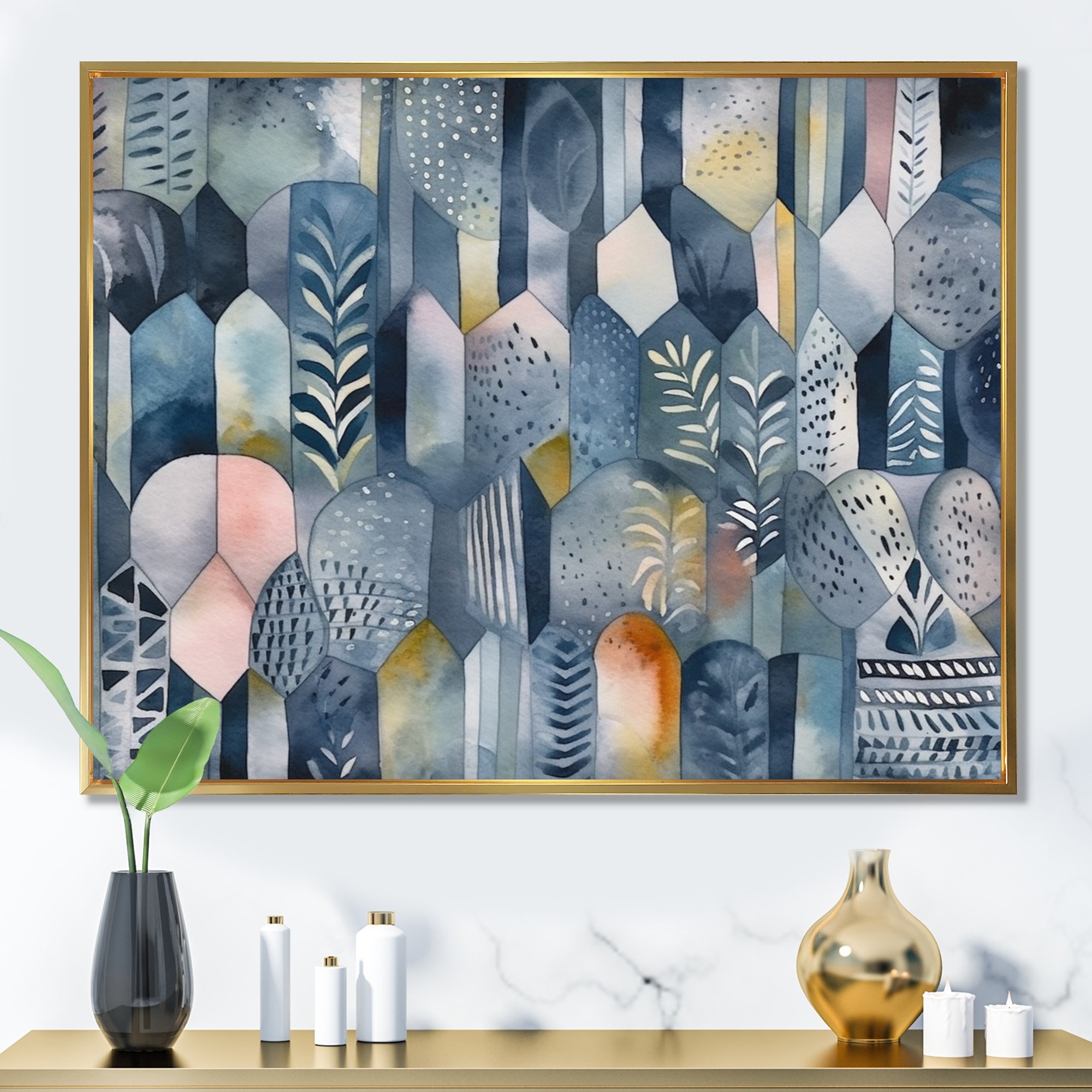 Designart "Blue And White Infinite Geometry I" Modern Geometric Framed Wall Decor