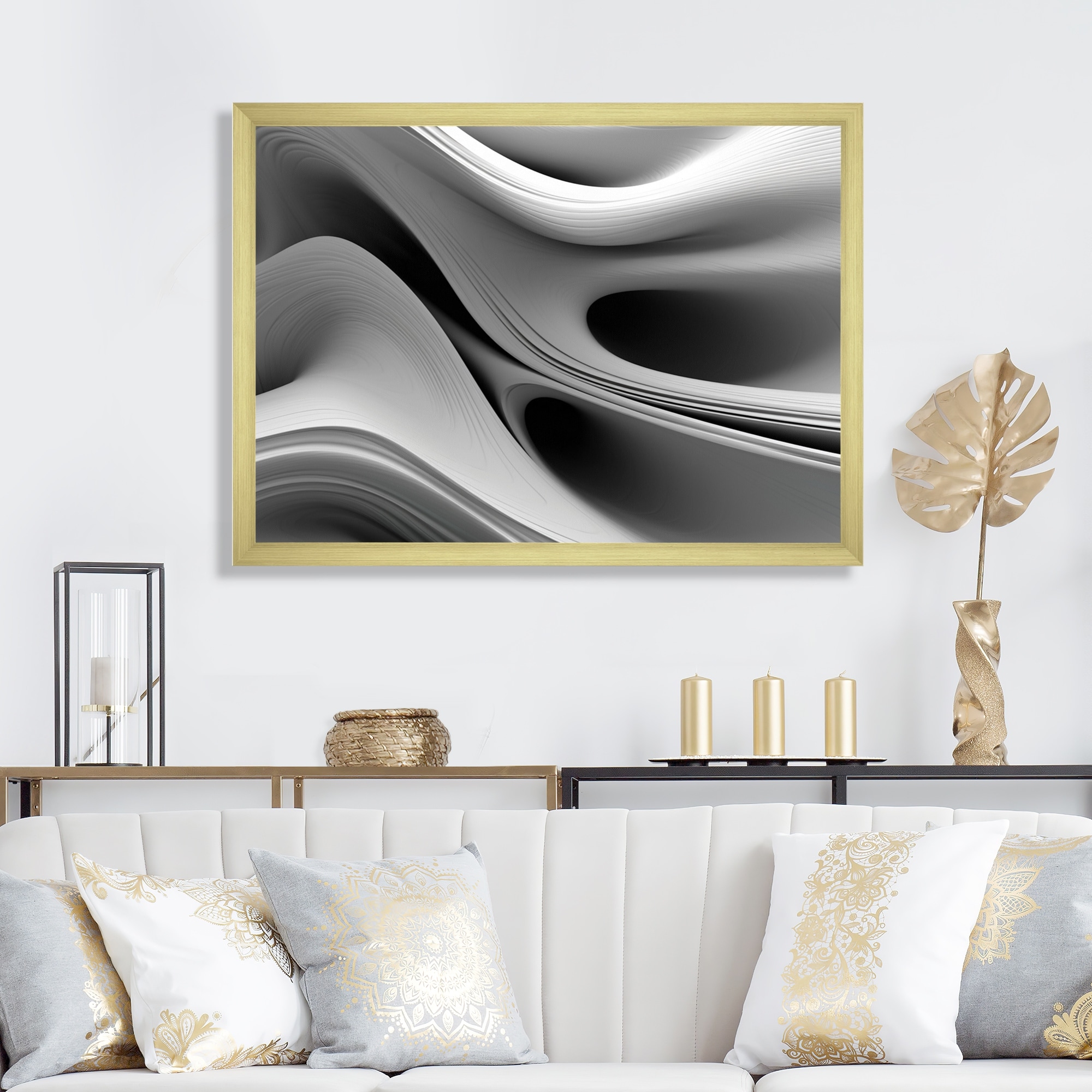 Designart "Grey Infinite Ripples" Modern Waves Framed Canvas Art Print