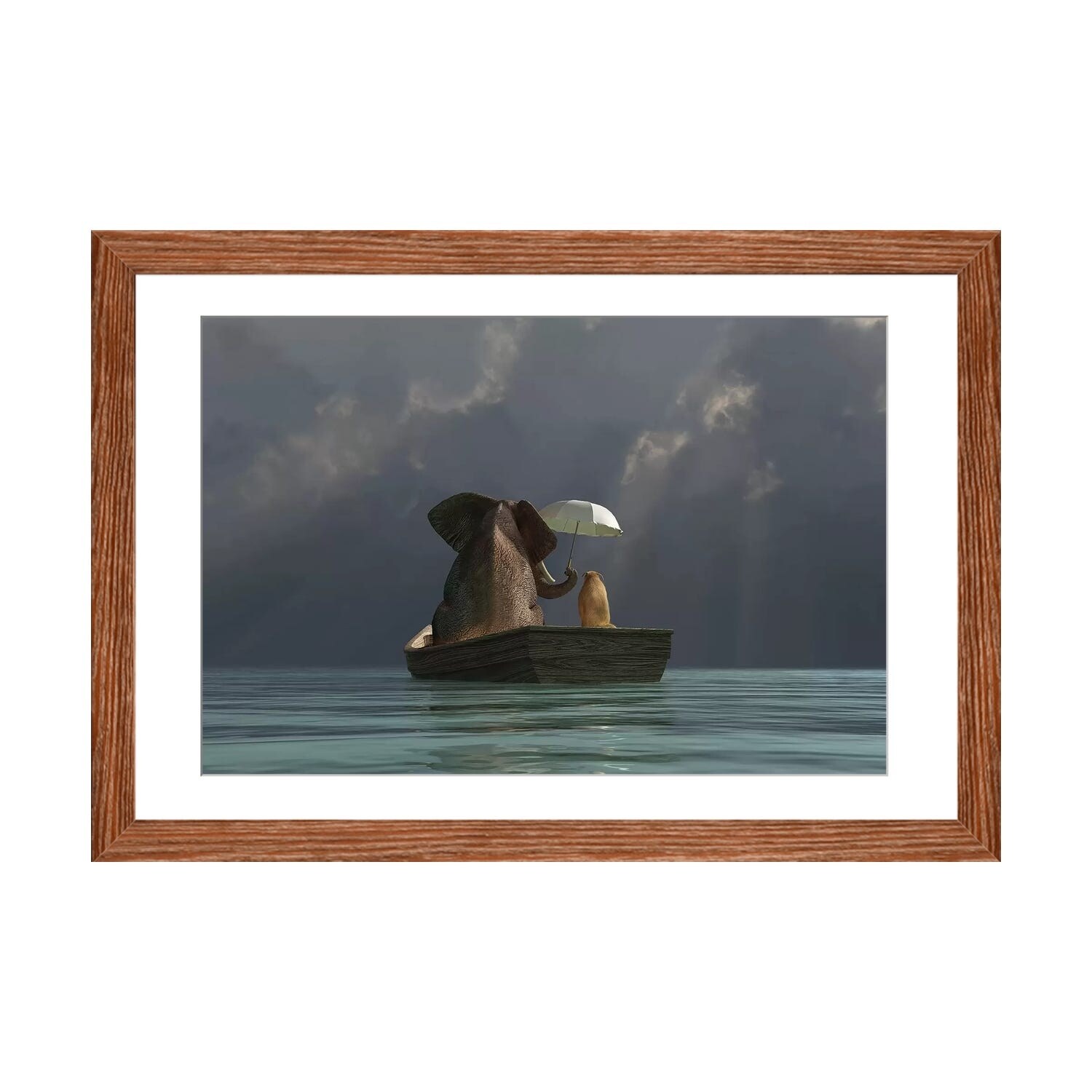 iCanvas "An Elephant And A Dog Float in A Boat in the Rain I" by Mike Kiev Framed