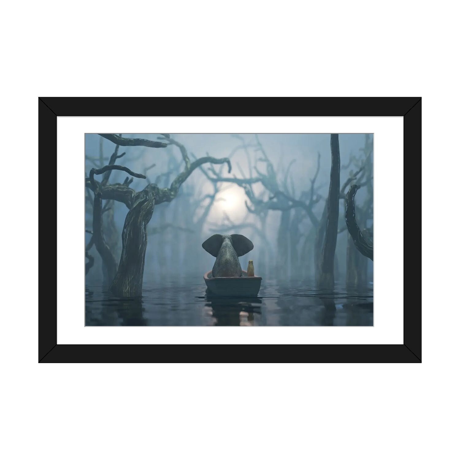 iCanvas "Elephant And Dog Float on A Boat on the River in the Fog" by Mike Kiev