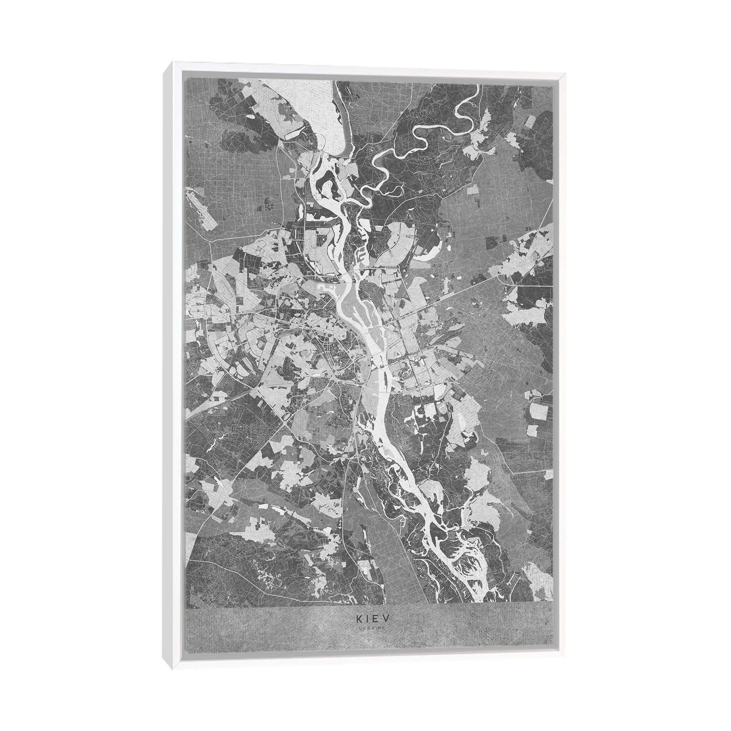 iCanvas "Gray Map of Kiev in Vintage Style" by blursbyai Framed