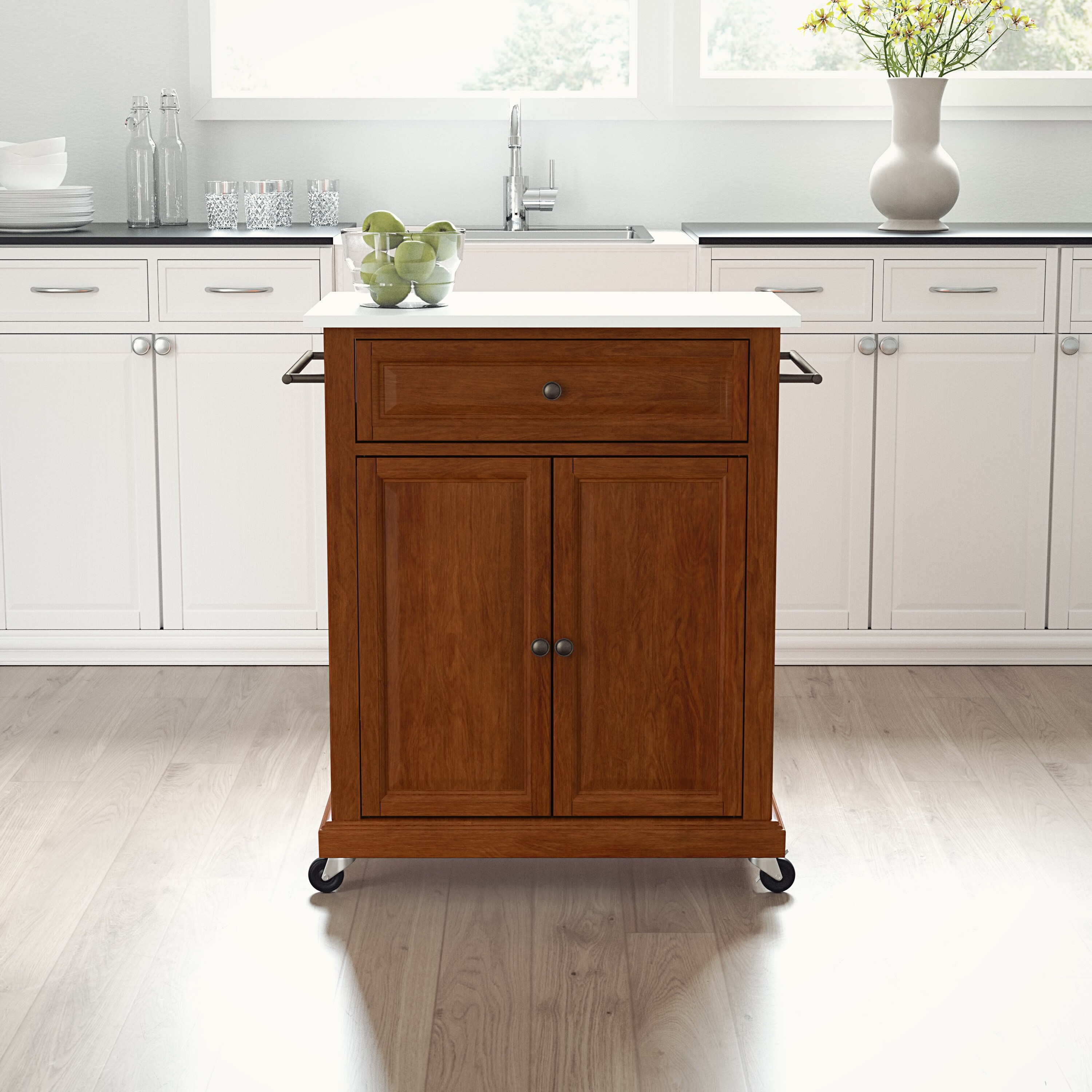 Kitchen Cart with Rubber wood Drop-Leaf Countertop