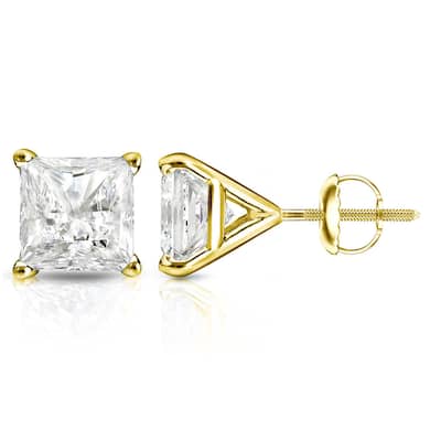 Auriya 14k Gold 1.25ctw Princess-cut Diamond Stud Earrings Martini-set