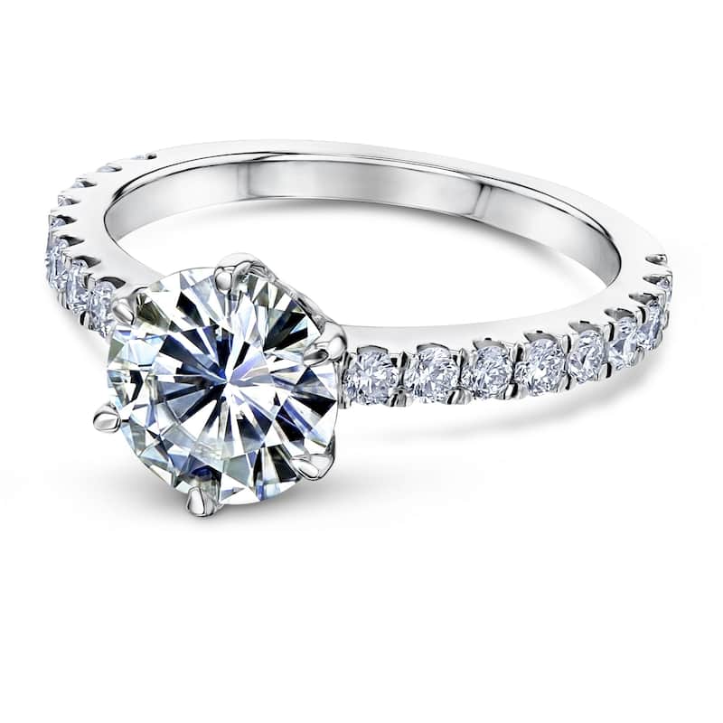 Auriya Classic 2ct Moissanite and Diamond Engagement Ring 1/6ctw 14K Gold