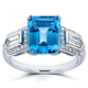 Annello by Kobelli 14k White Gold 4 1/2ct TGW Emerald-cut Blue Topaz and Bullet-cut Diamond Art Deco Ring