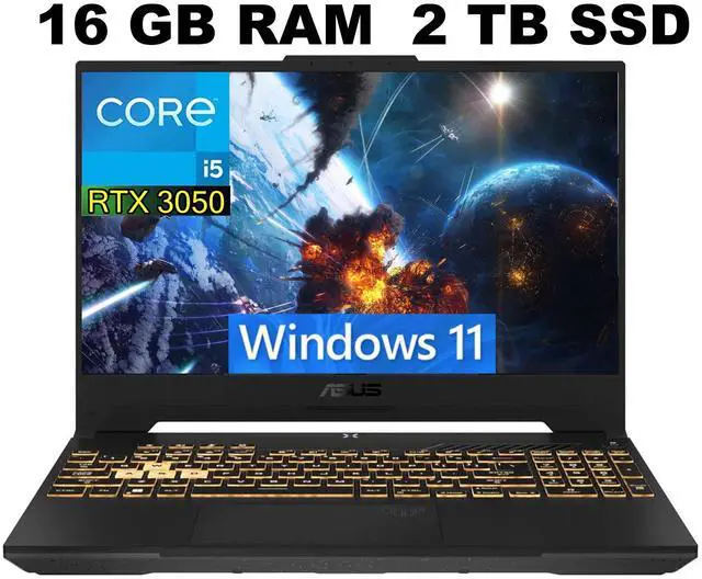 ASUS TUF F15 Gaming Laptop, 15.6" FHD 144Hz Display, Intel Core i5-12500H 12-Core Processor, GeForce RTX 3050 6 GB GDDR6, 32GB DDR4 2TB PCIe SSD, Wi-Fi 6, HD Camera, Windows 11 Pro