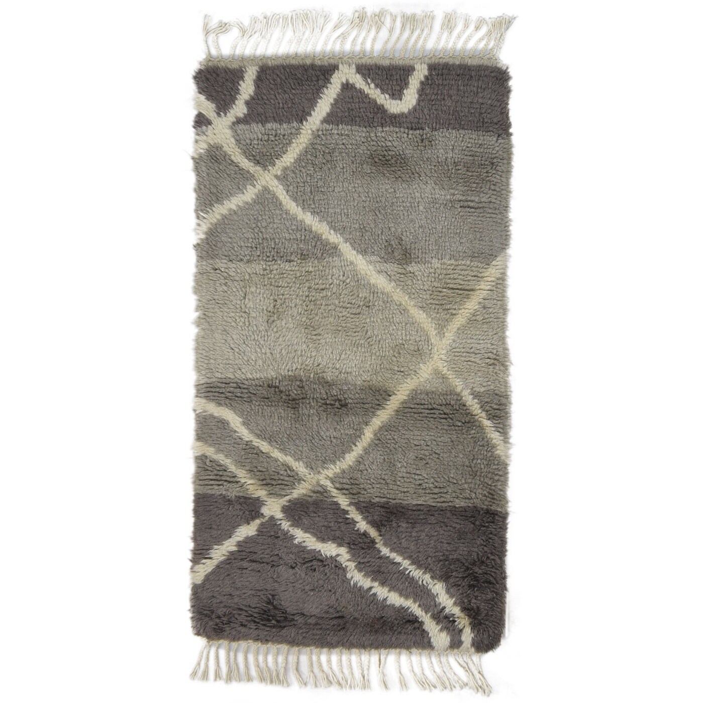 One of a Kind Hand-Knotted Shag 3' x 5' Geometric Wool Grey Rug - 2'8"x5'4"