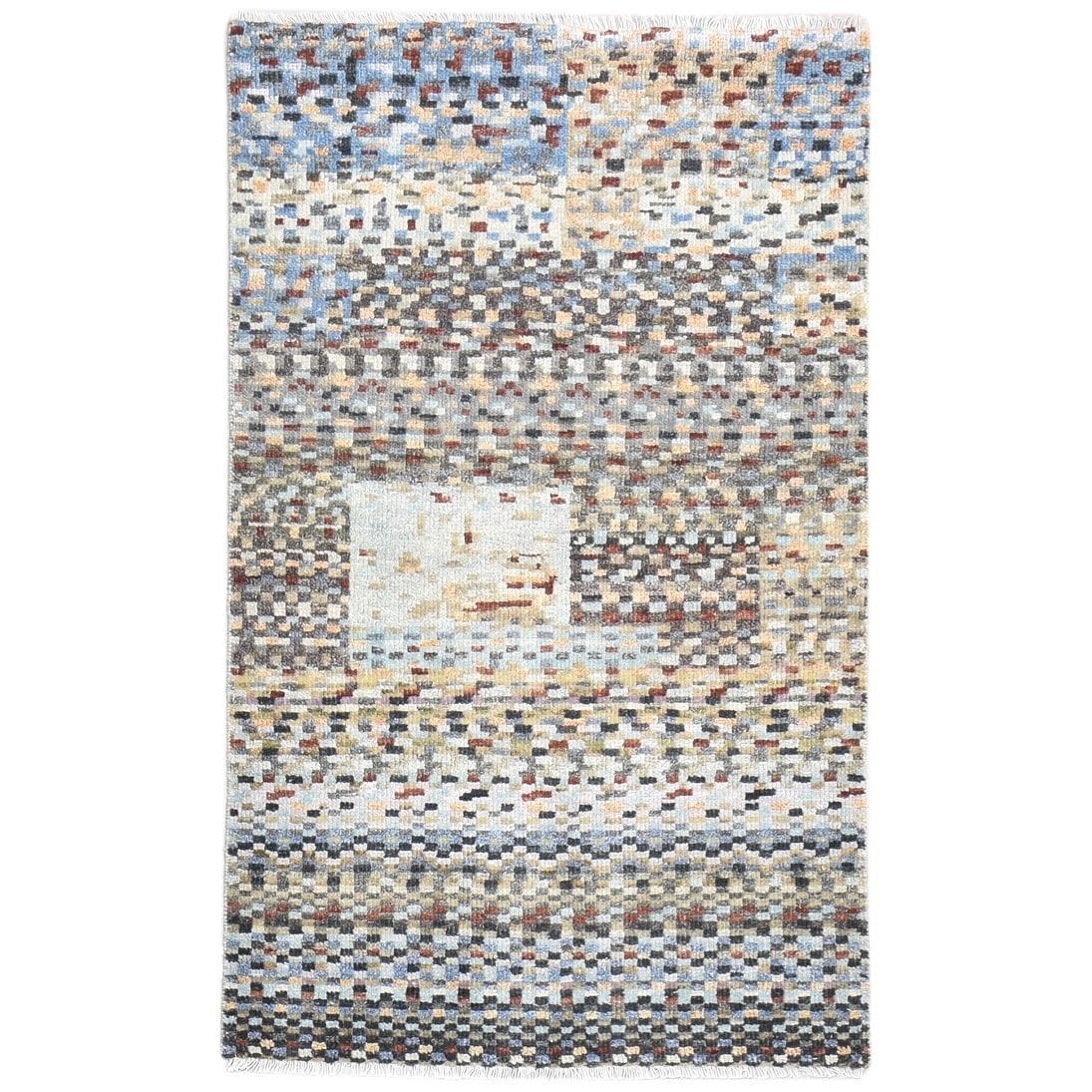 One of a Kind Hand-Knotted Modern 3' x 5' Abstract Wool Tan Rug - 3' x 5'
