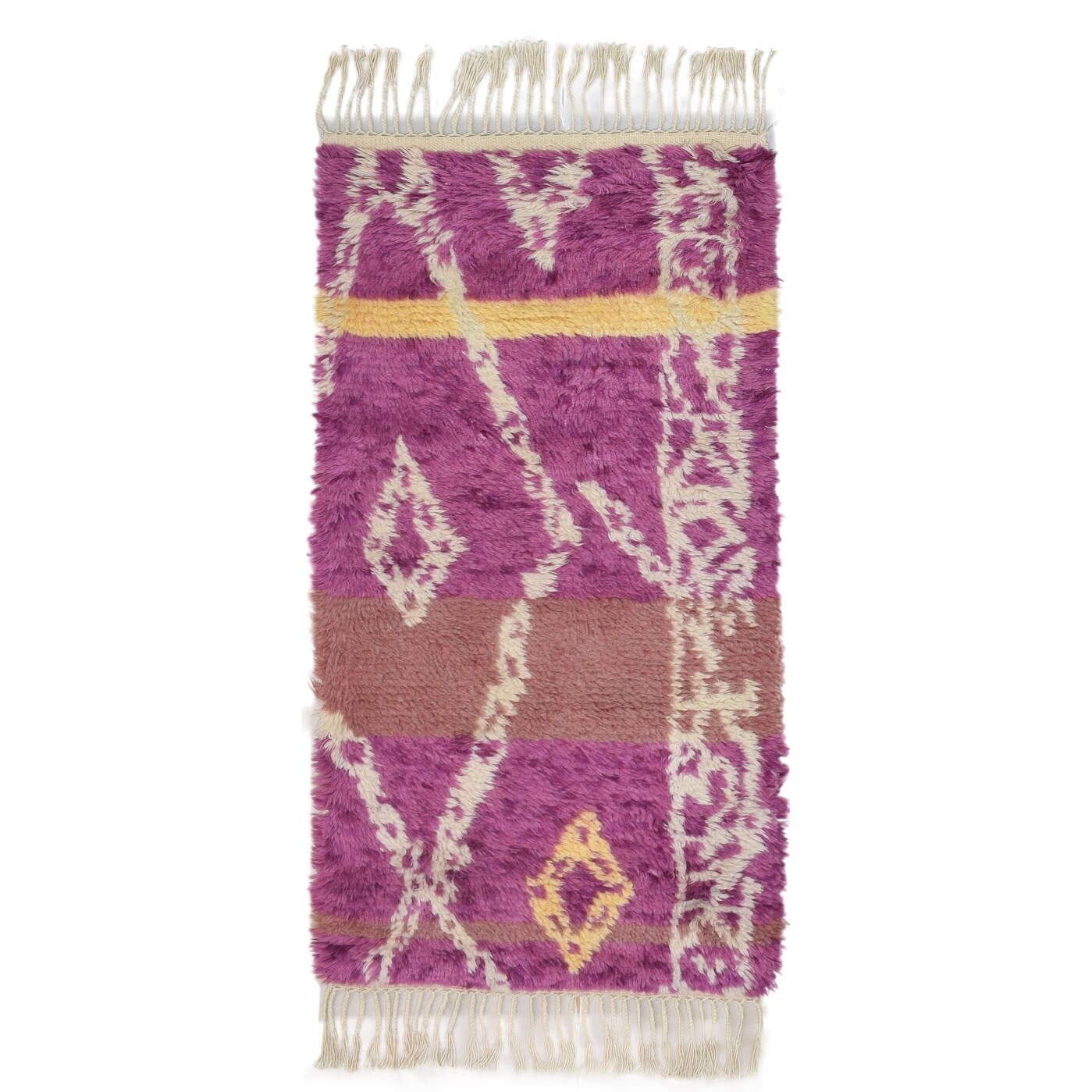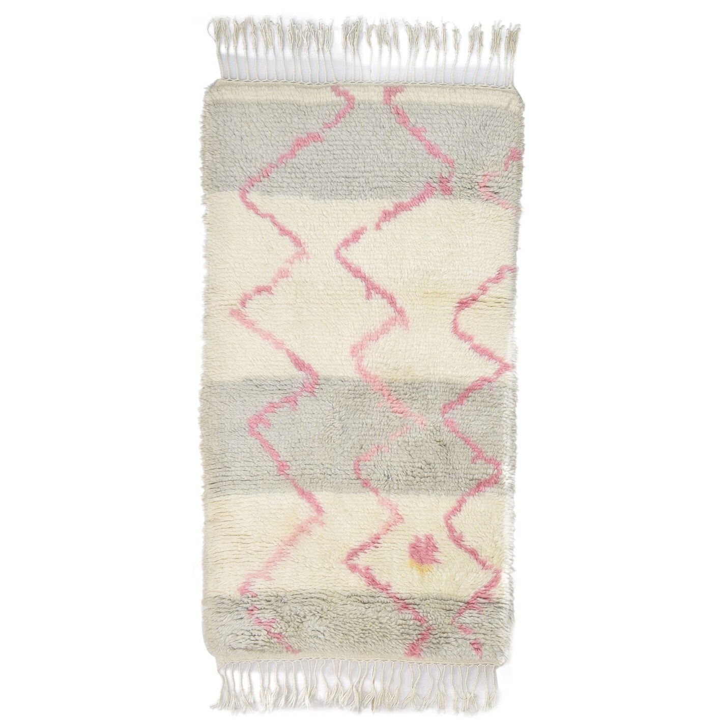 One of a Kind Hand-Knotted Shag 3' x 5' Geometric Wool Pink Rug - 2'6"x5'1"