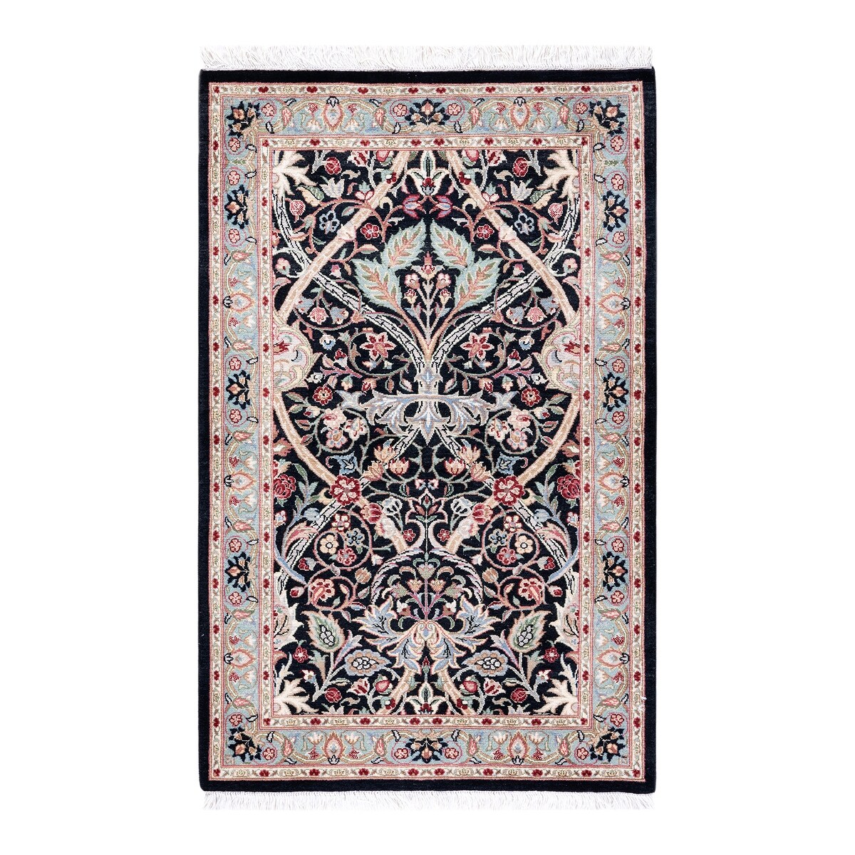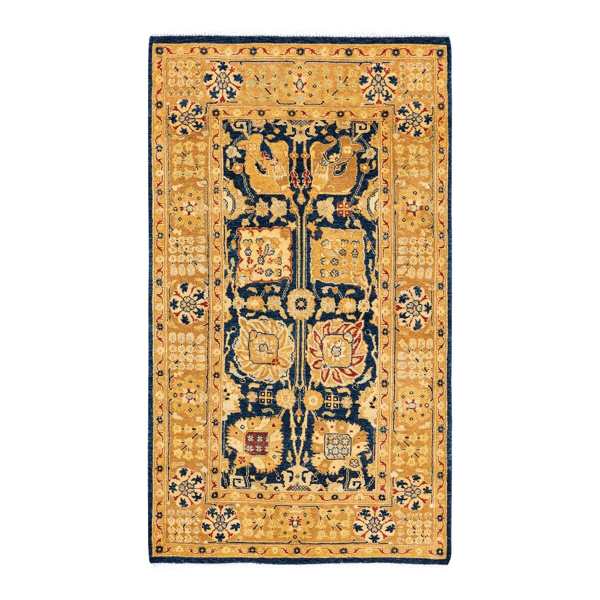 Overton Eclectic One-of-a-Kind Hand-Knotted Area Rug - Navy, 3' 1" x 5' 3" - 3' 1" x 5' 3"