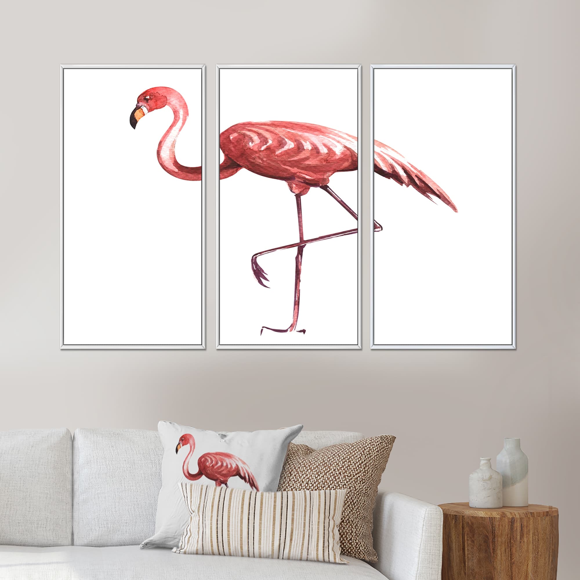 Designart "Pink Flamingo on One Leg" Traditional Framed Art Set of 3 - 4 Colors of Frames