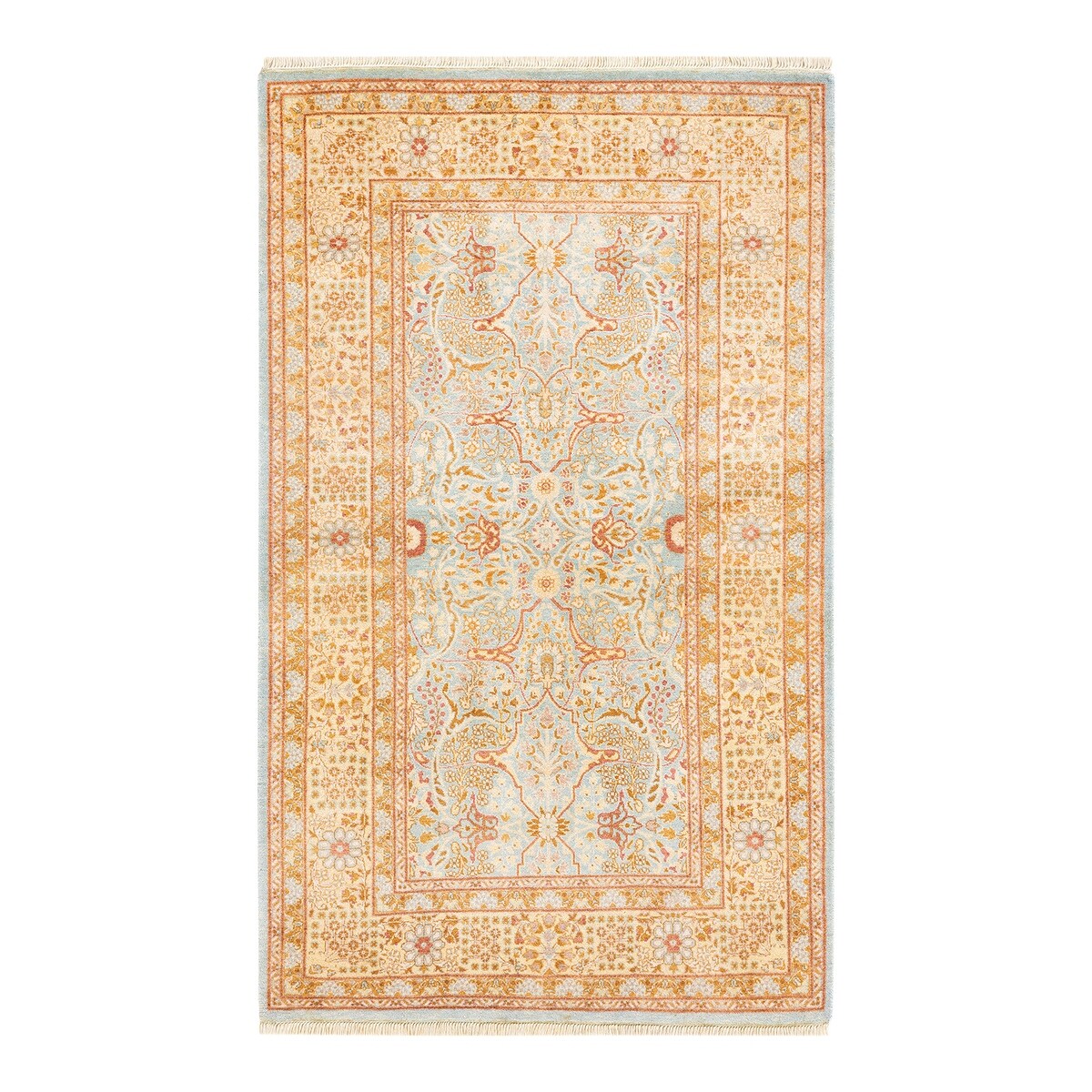 Overton One-of-a-Kind Hand-Knotted Traditional Oriental Mogul Light Blue Area Rug - 3' 2" x 5' 3"