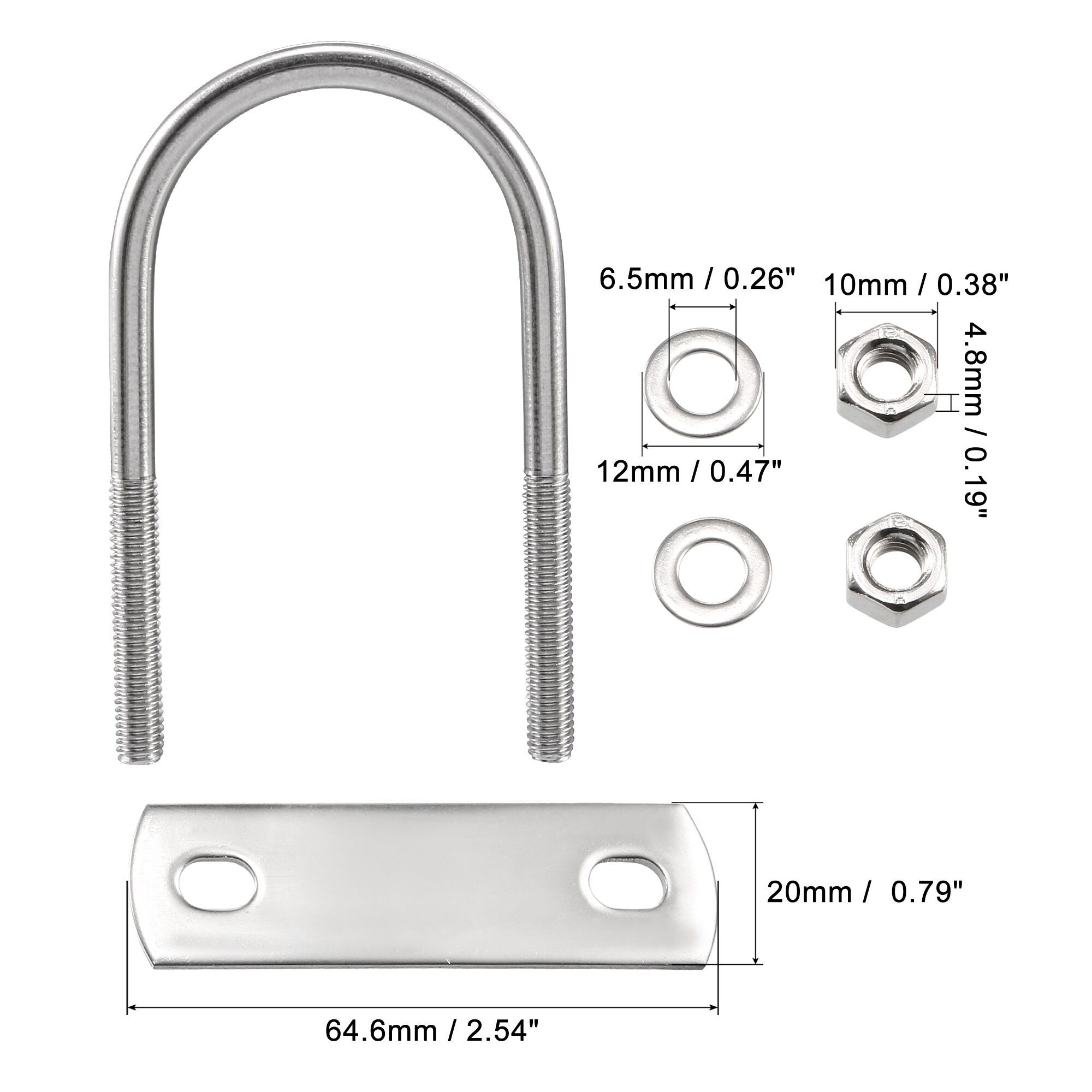 Round U-Bolt, 304 Stainless Steel with Nut Plate Washer