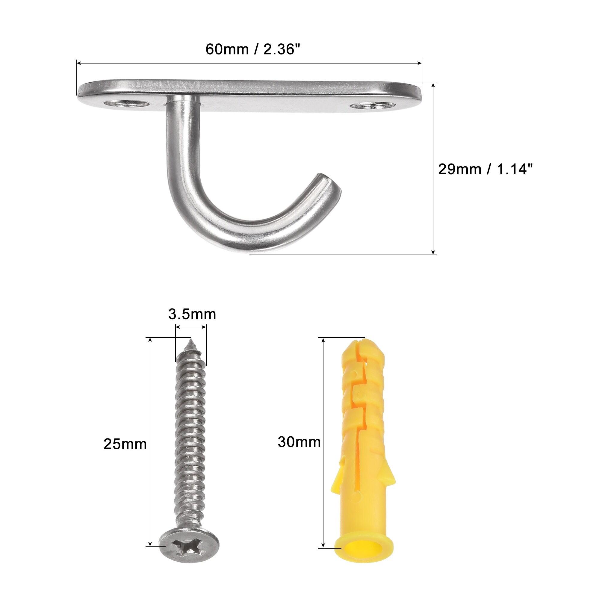 Ceiling Hooks 304 Stainless Steel 60x20mm for Hanging Plants 2Pcs - Silver
