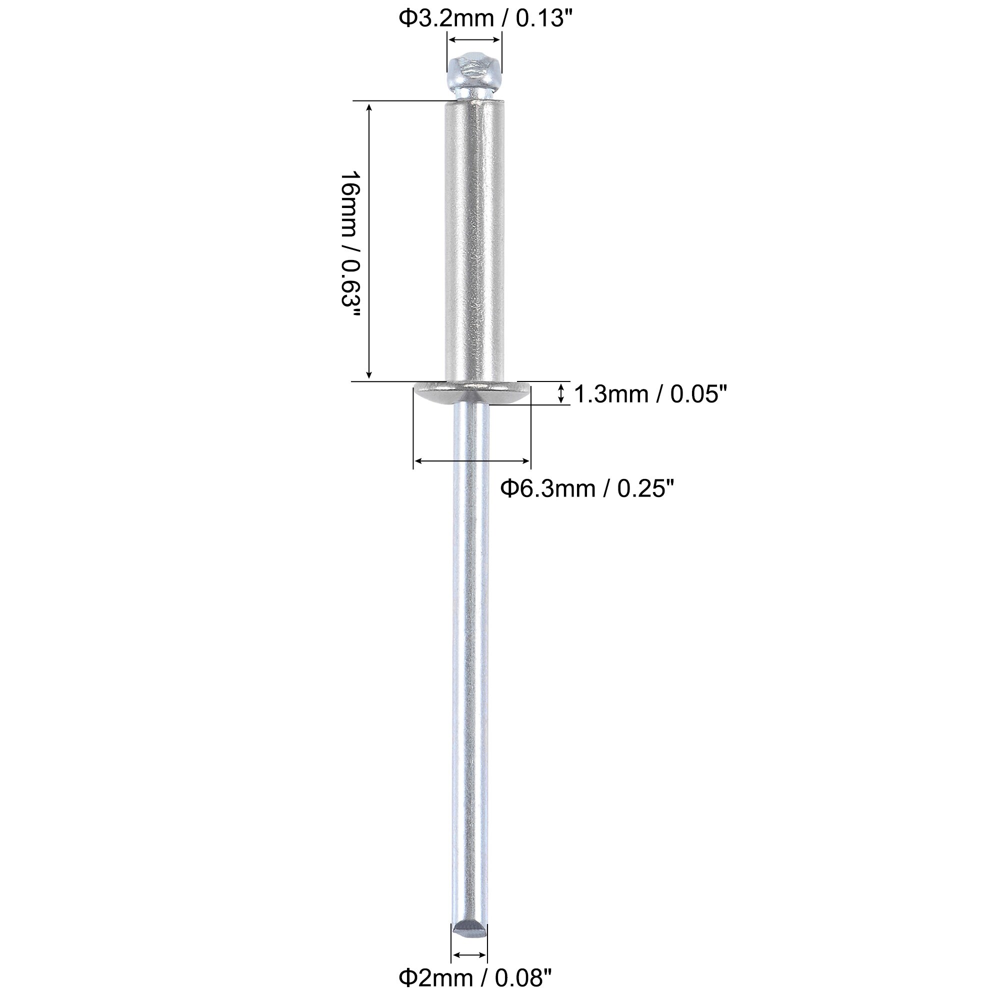 Blind Rivets 304 Stainless Steel 3.2mm Diameter, 50pcs