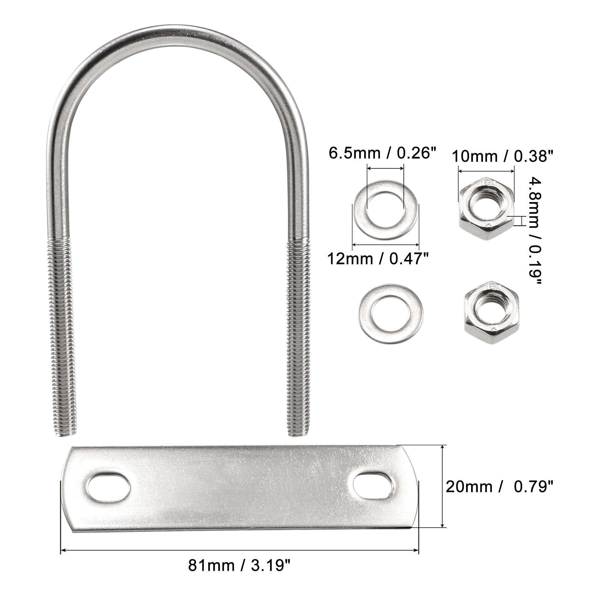 Round U-Bolt 304 Stainless Steel with Nut Plate Washer