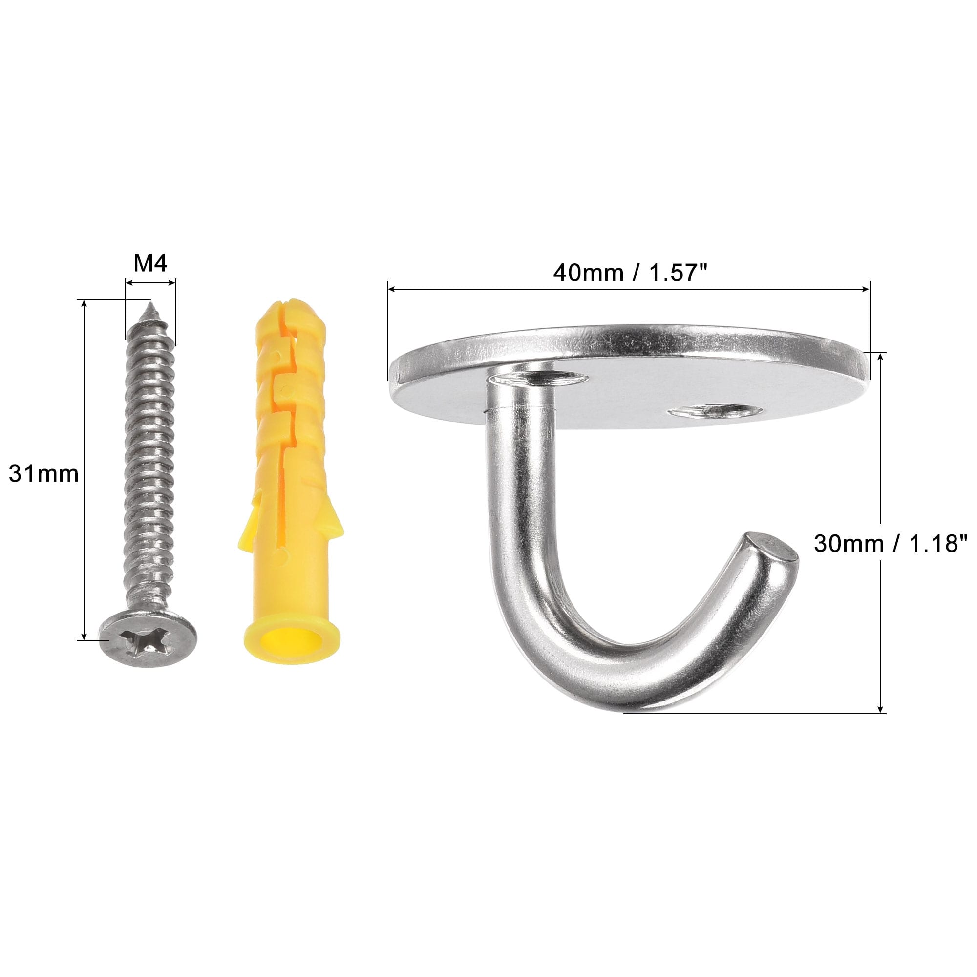 Ceiling Hooks 304 Stainless Steel 40mm for Hanging Plants 6Pcs - Silver