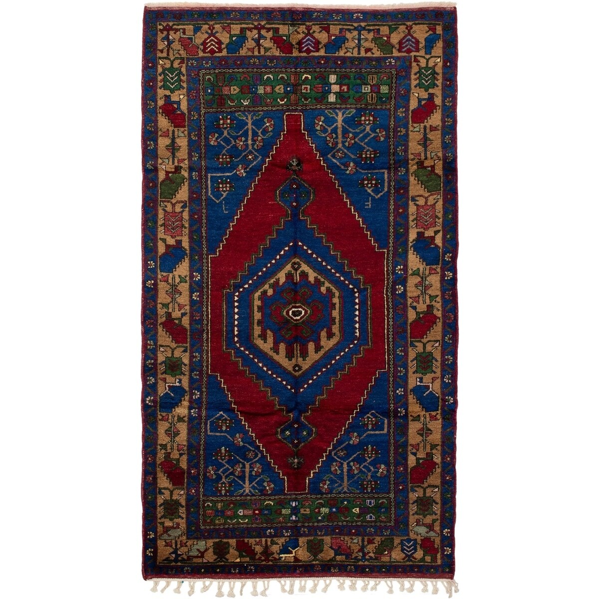 Hand-knotted Anatolian Vintage Blue, Red Wool Rug - 5'1" x 9'5"