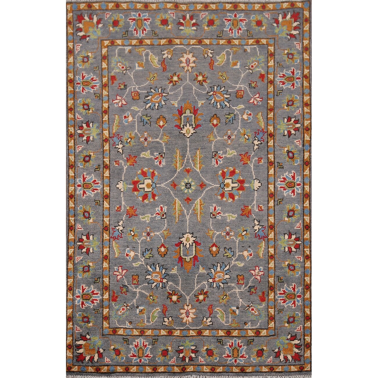 All-Over Gray Oushak Oriental Accent Rug Hand-Knotted Wool Carpet - 3'7" x 5'1"