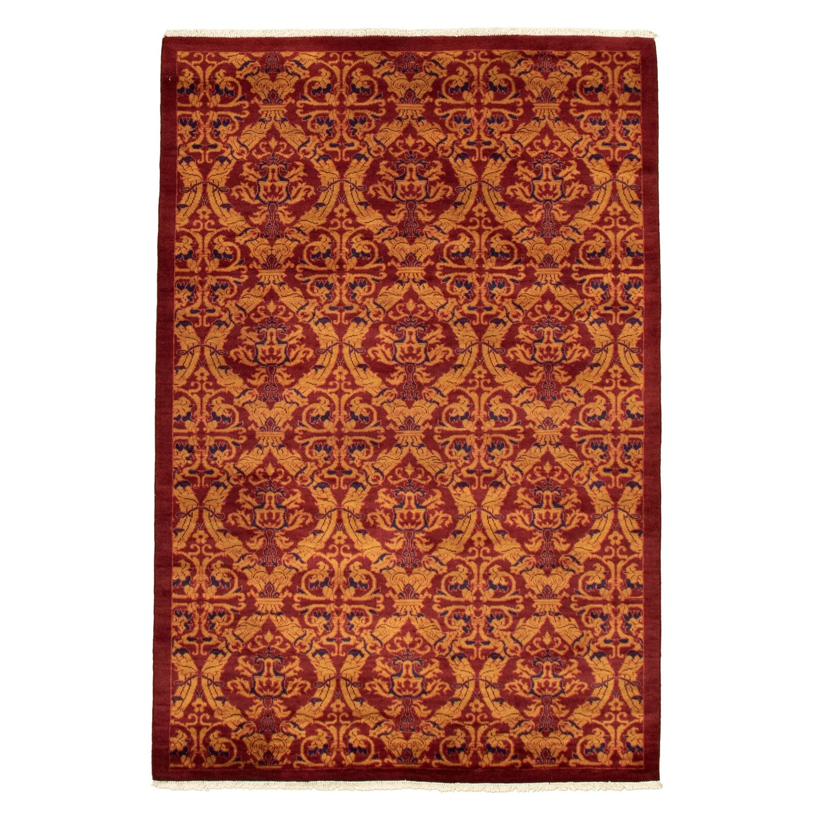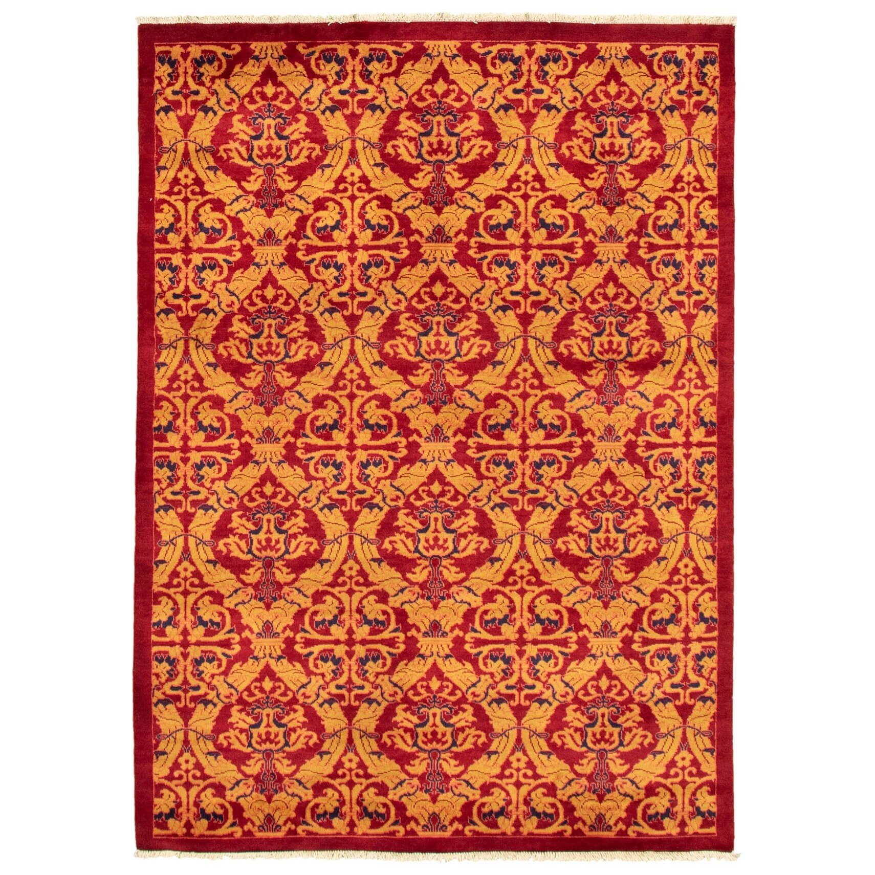 ECARPETGALLERY Hand-knotted Yamout Red Wool Rug - 5'1" x 7'8"
