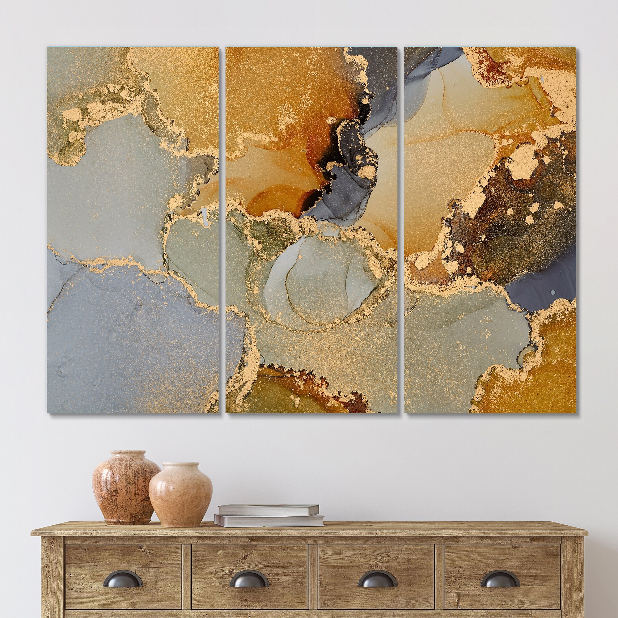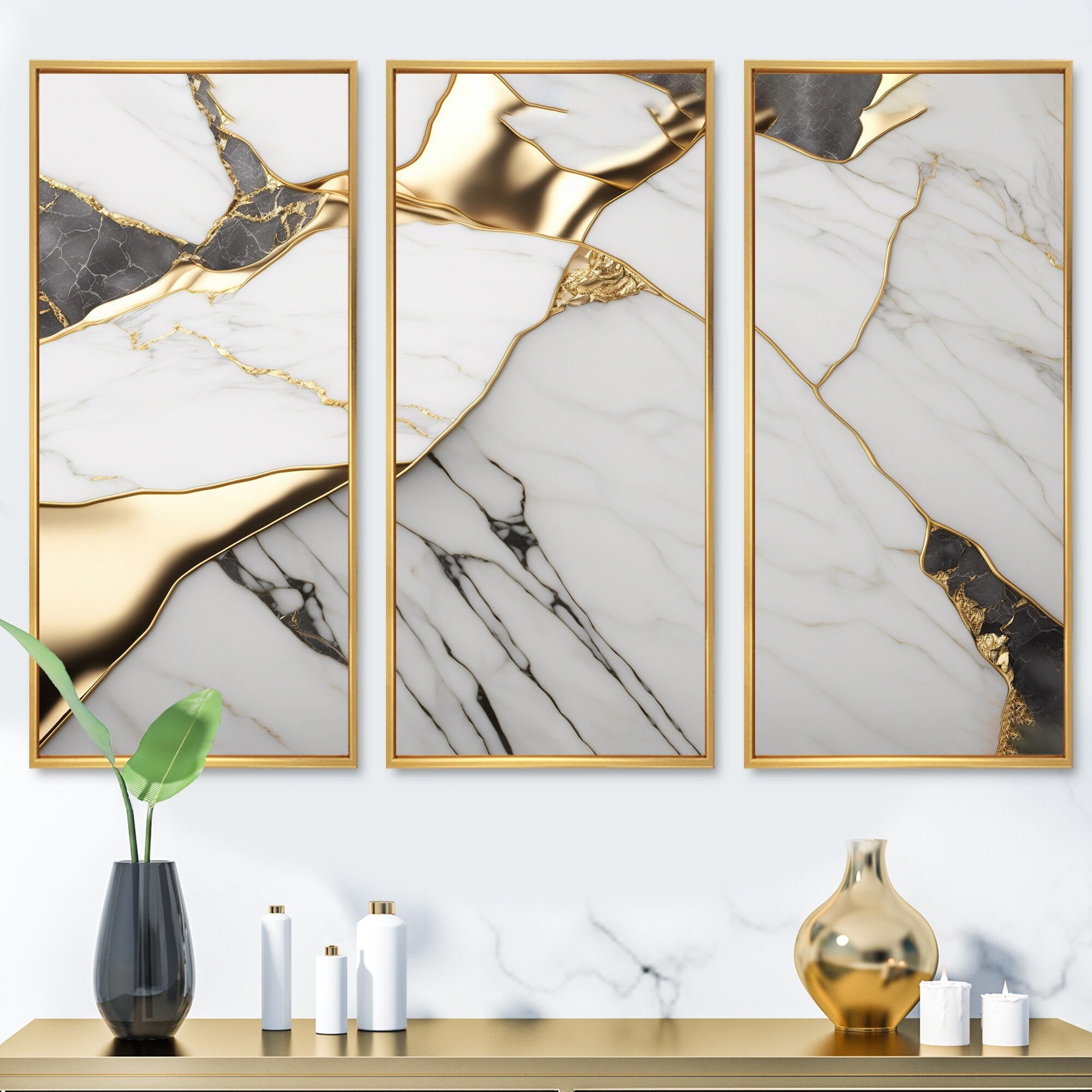 Designart "Abstract Geode Marble White And Gold I" Abstract Marble Framed Canvas Art Print - 3 Panels