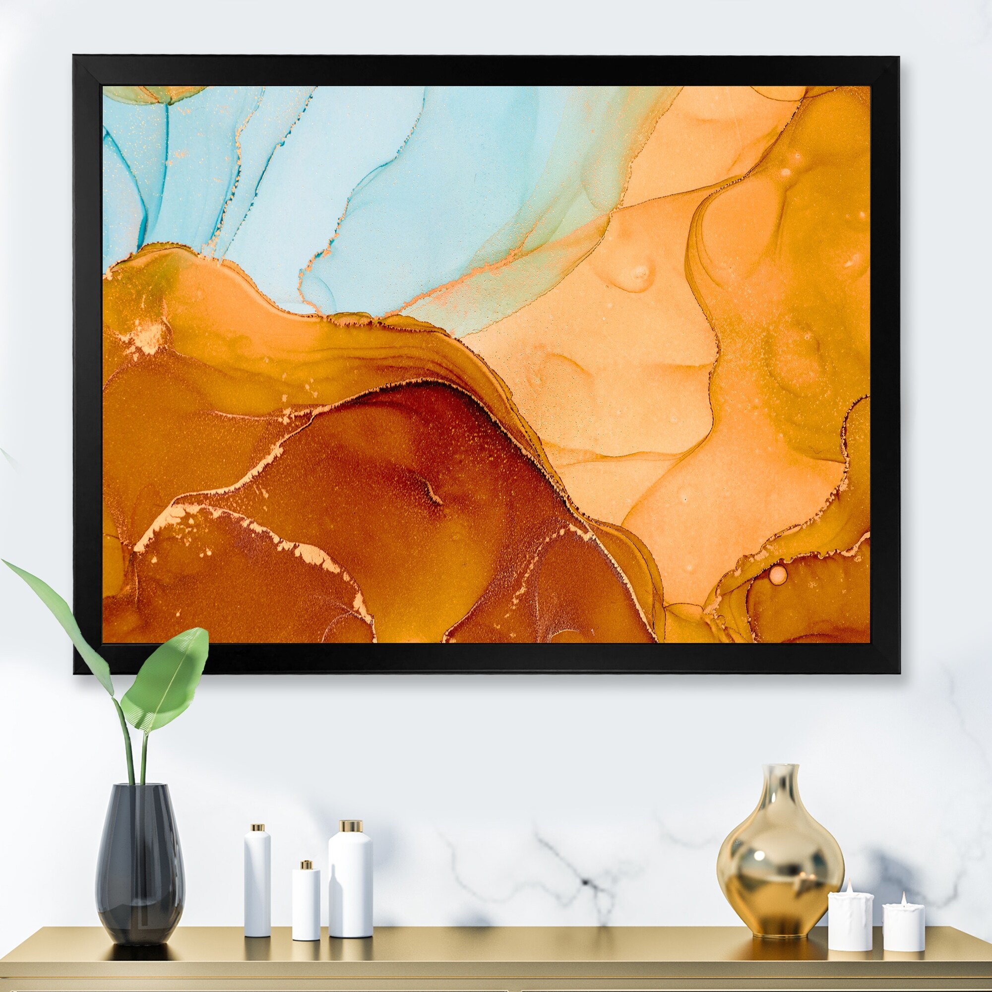 Designart "Blue And Brown Luxury Abstract Fluid Art VI" Modern Framed Art Print