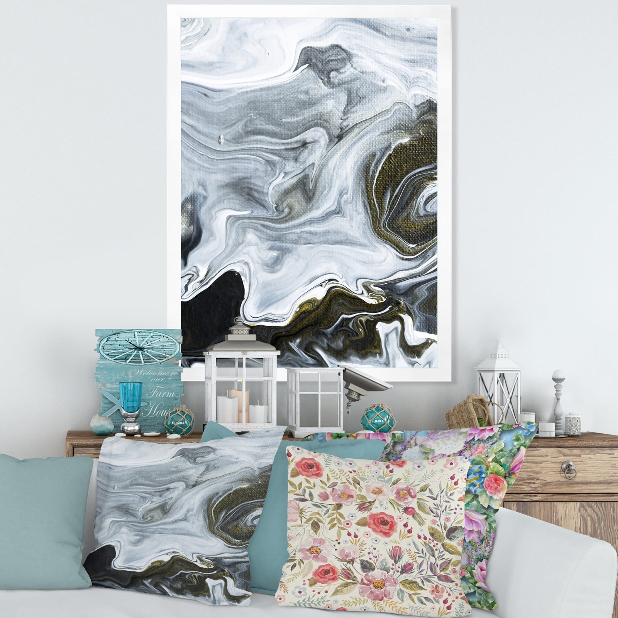 Designart "Black And White Marble Abstract Liquid Art" Modern Framed Art Print