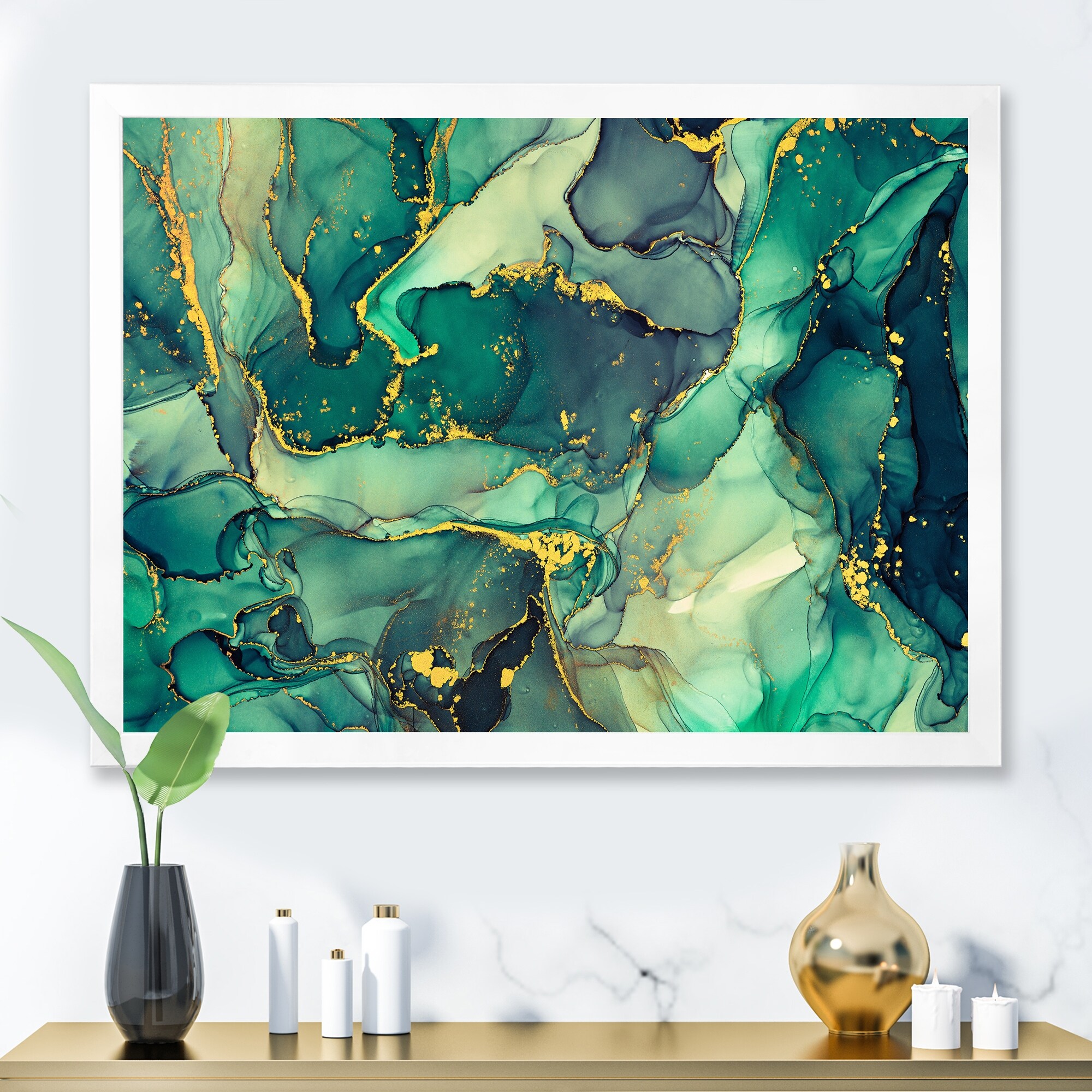 Designart "Green Luxury Abstract Fluid Art IV" Modern Framed Art Print