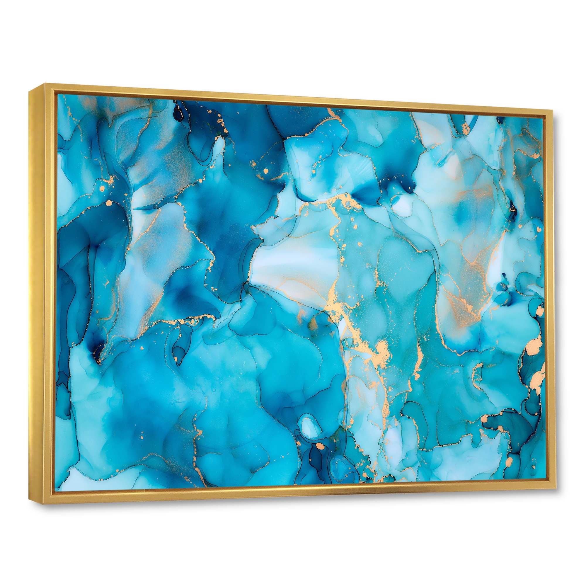 Designart "Turquoise Luxury Abstract Fluid Art I" Modern Framed Canvas Wall Art Print