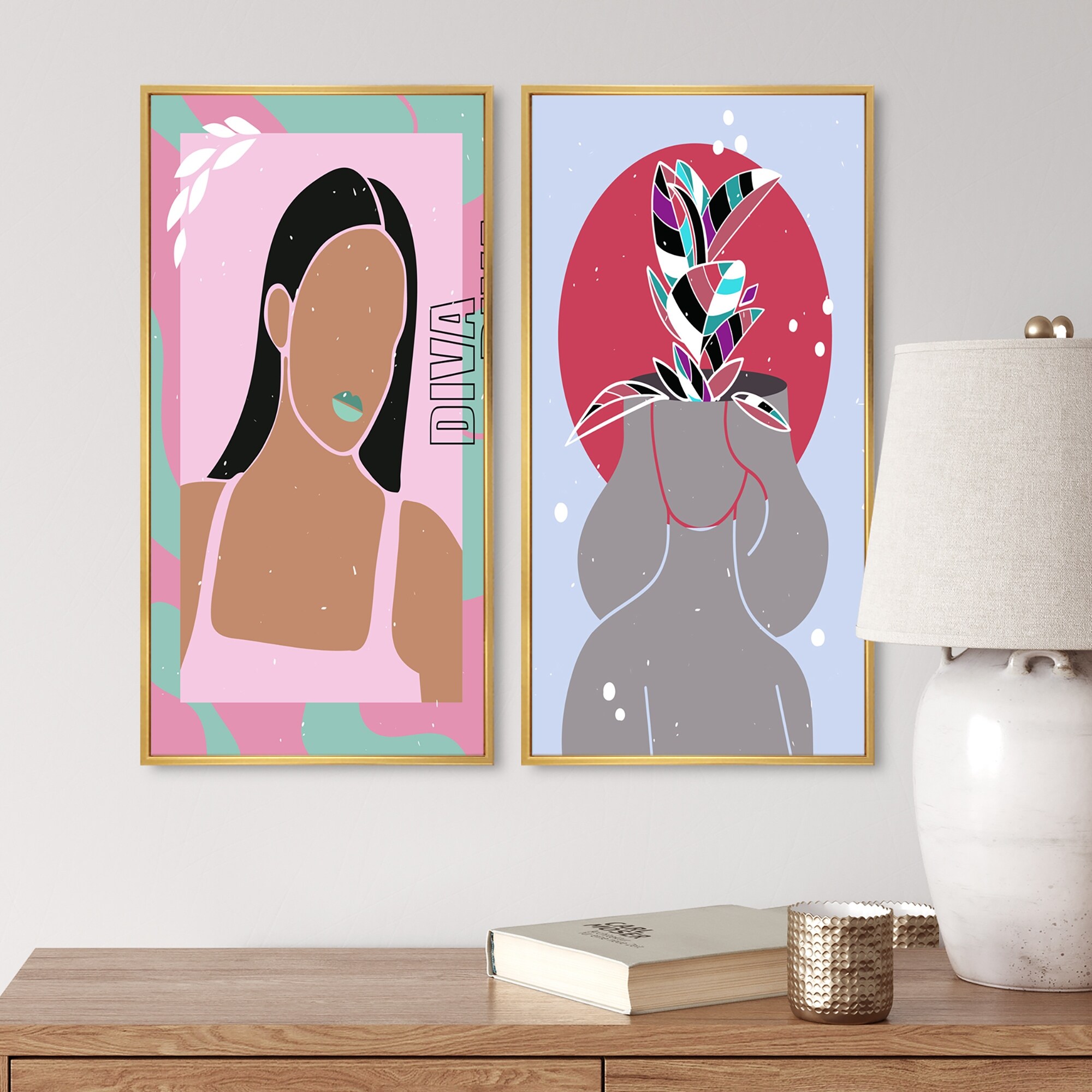 Designart "Minimalism Fashion Abstract IV" Abstract Framed Art Set of 2 Pieces