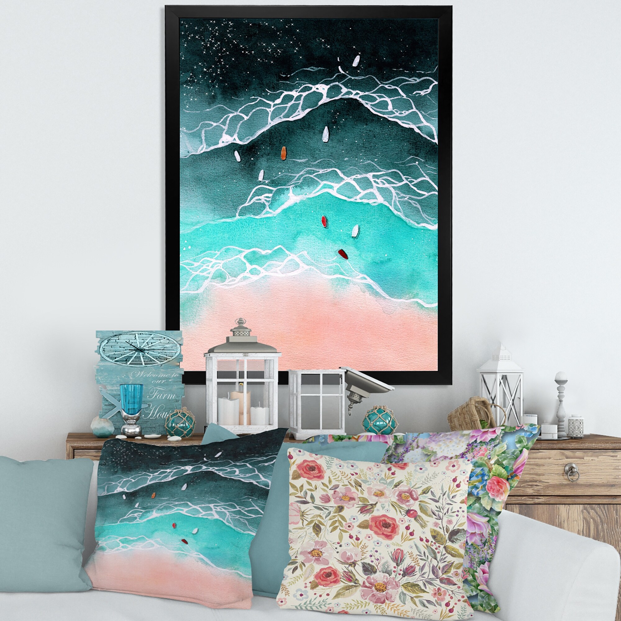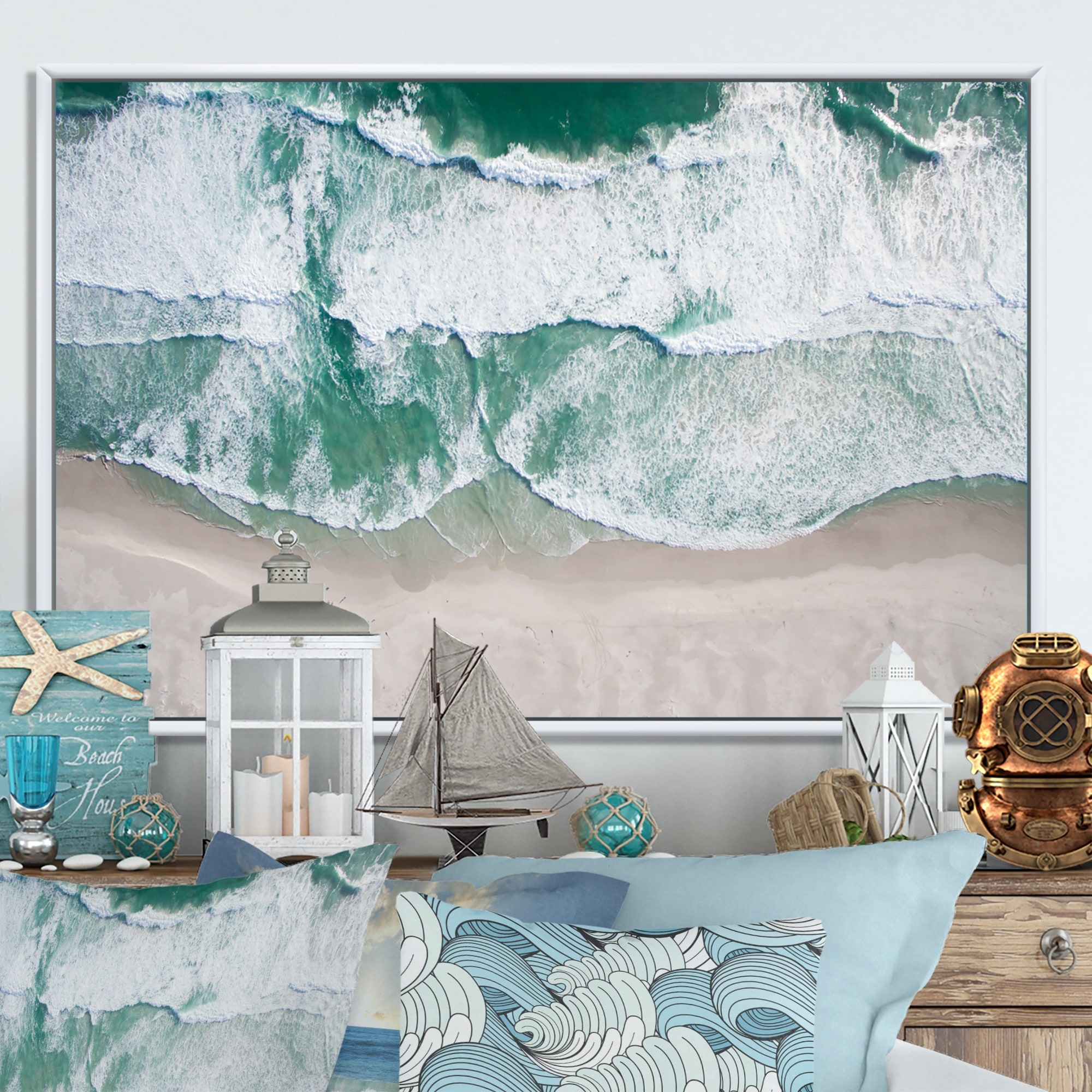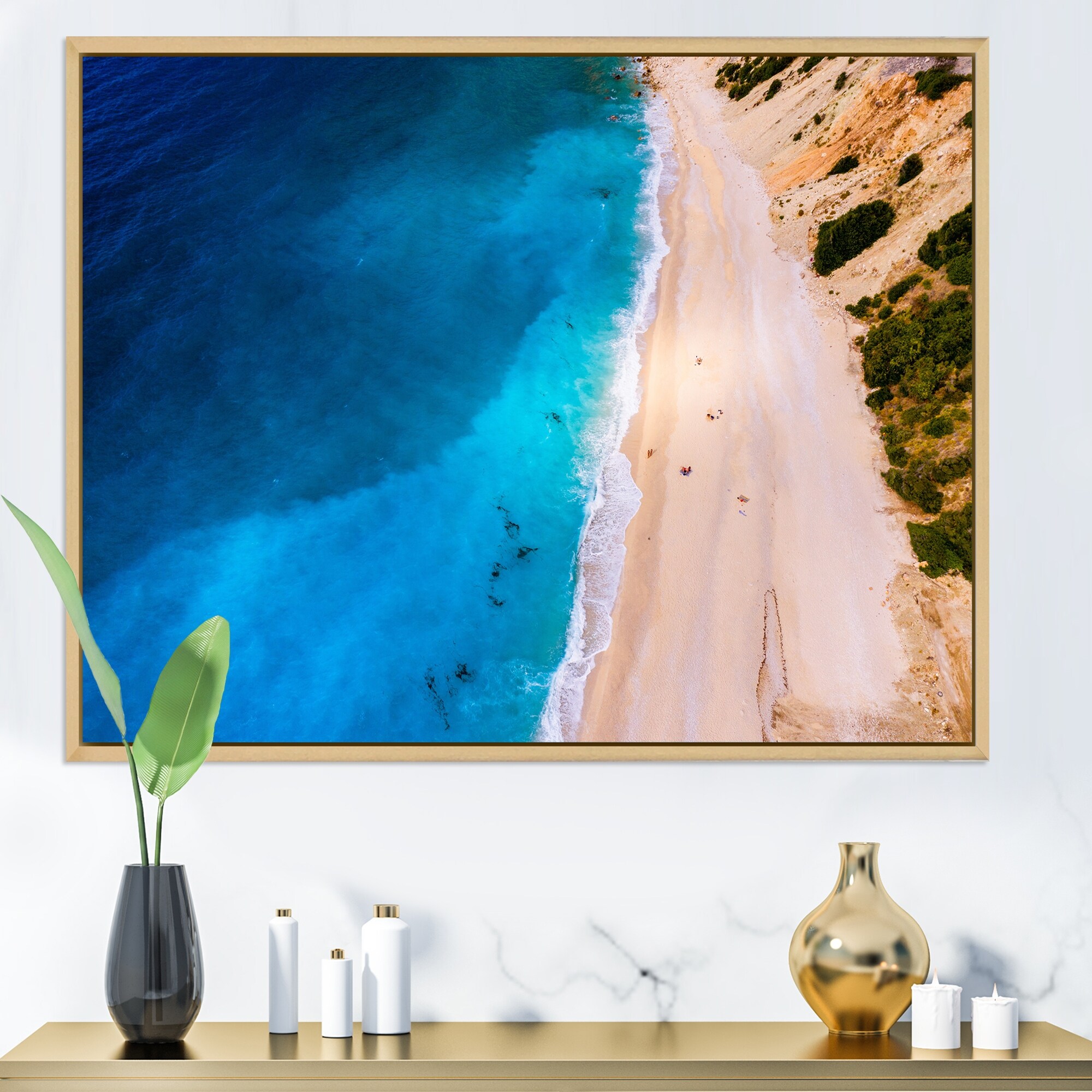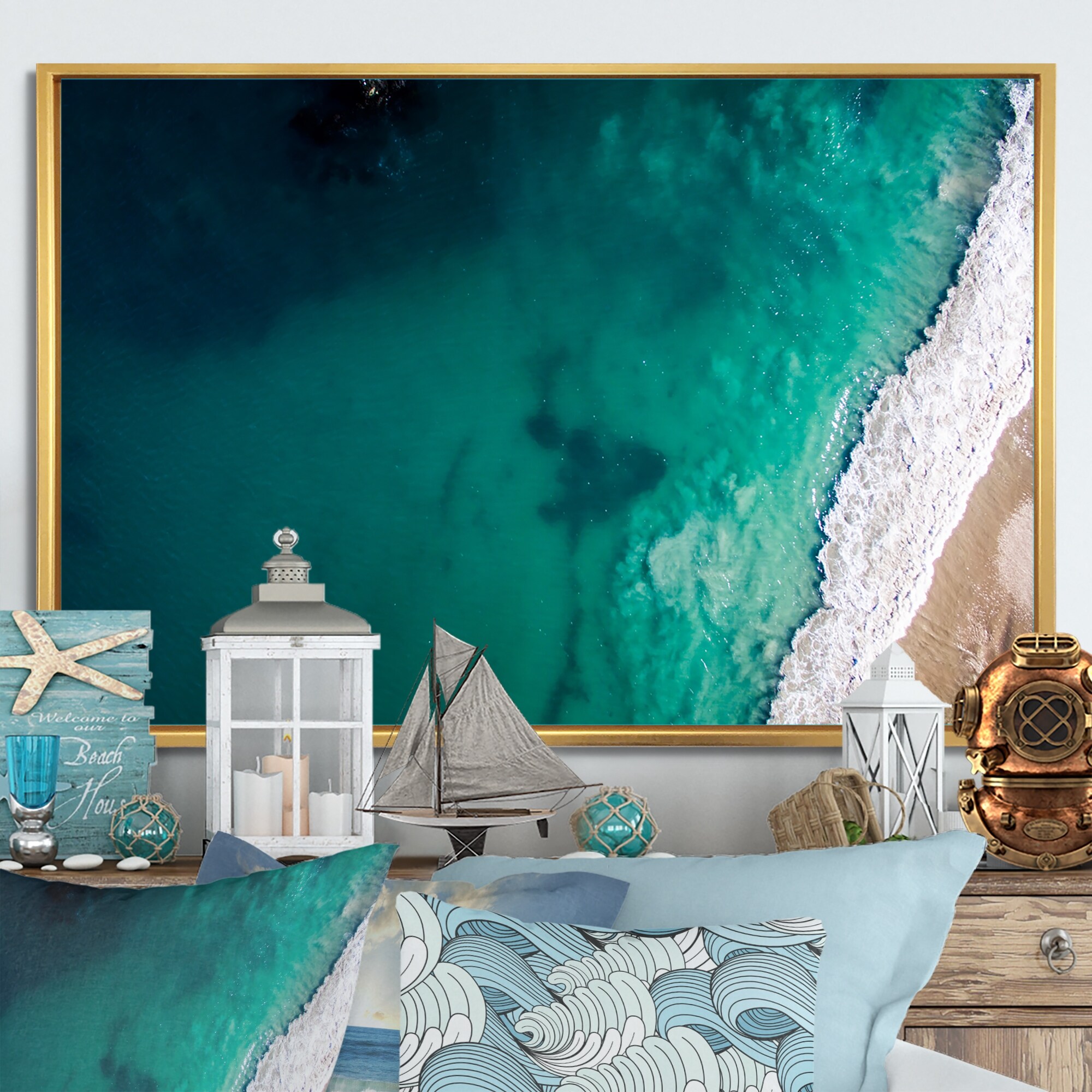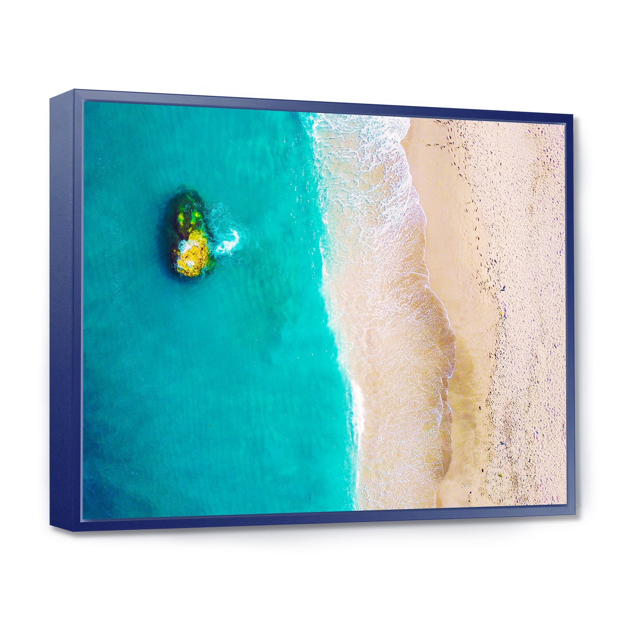 Designart "Aerial View Turquoise Water on Beahc" Nautical & Coastal Framed Canvas Wall Art Print