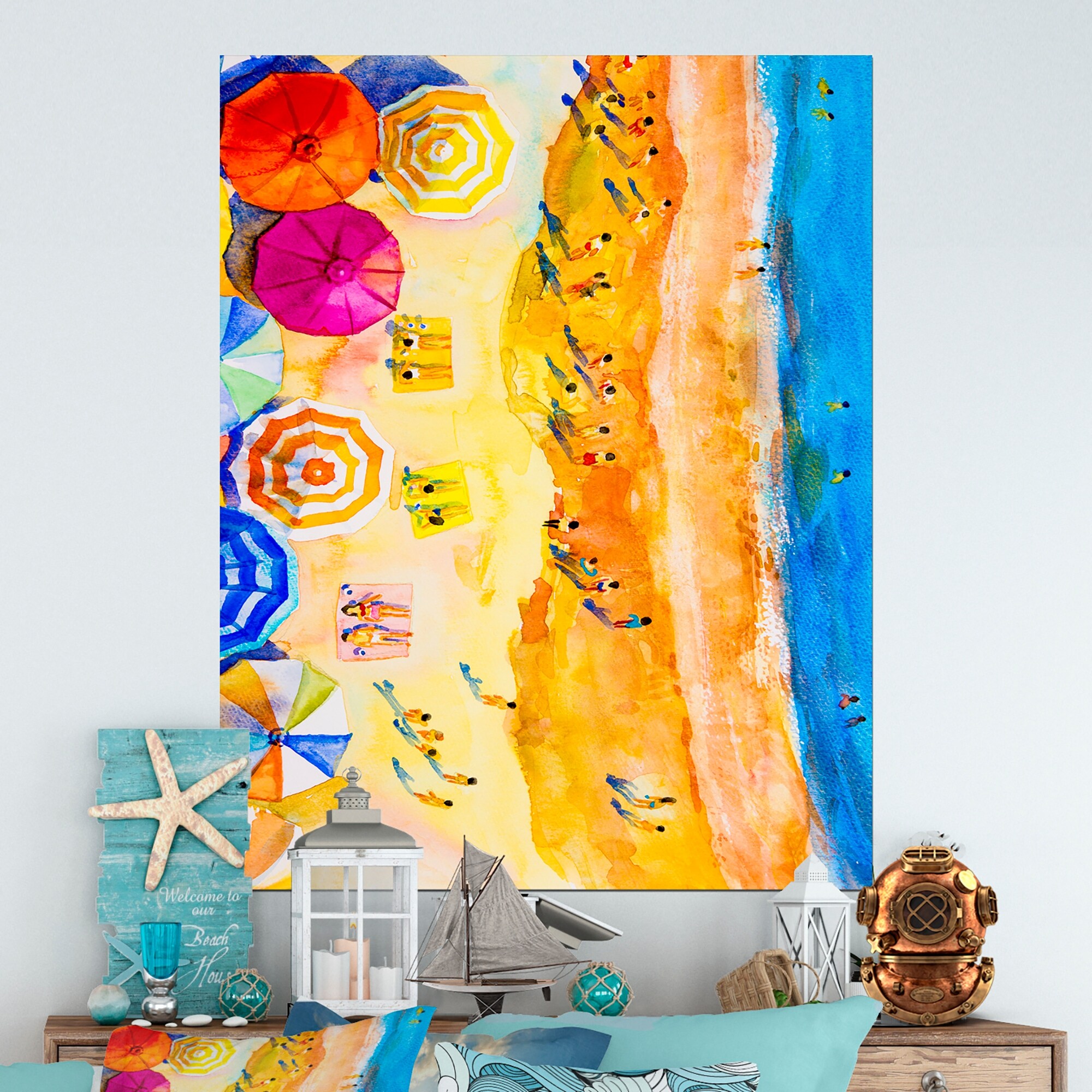 Designart "Aerial Pastel Beach California II" Nautical & Coastal Canvas Art Print