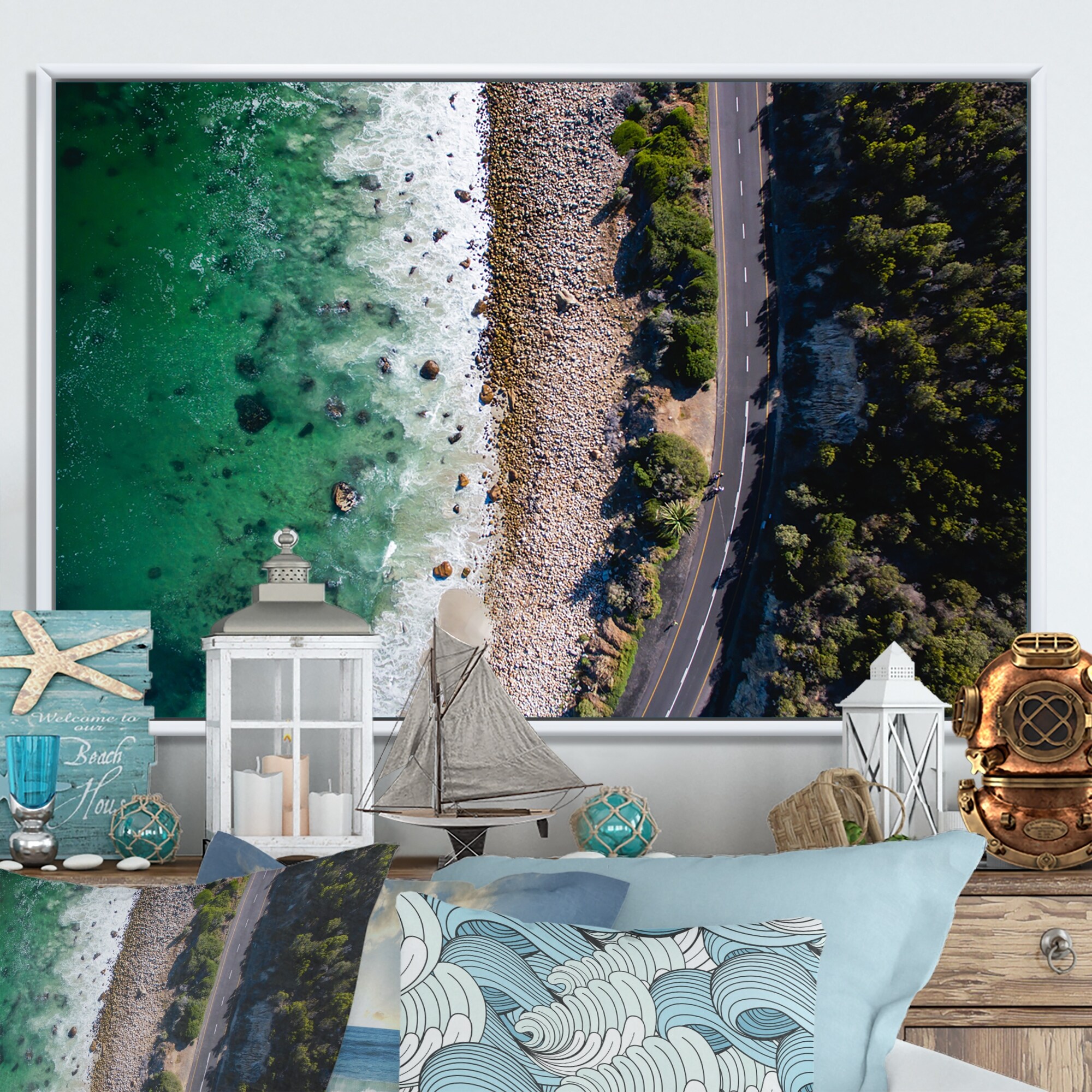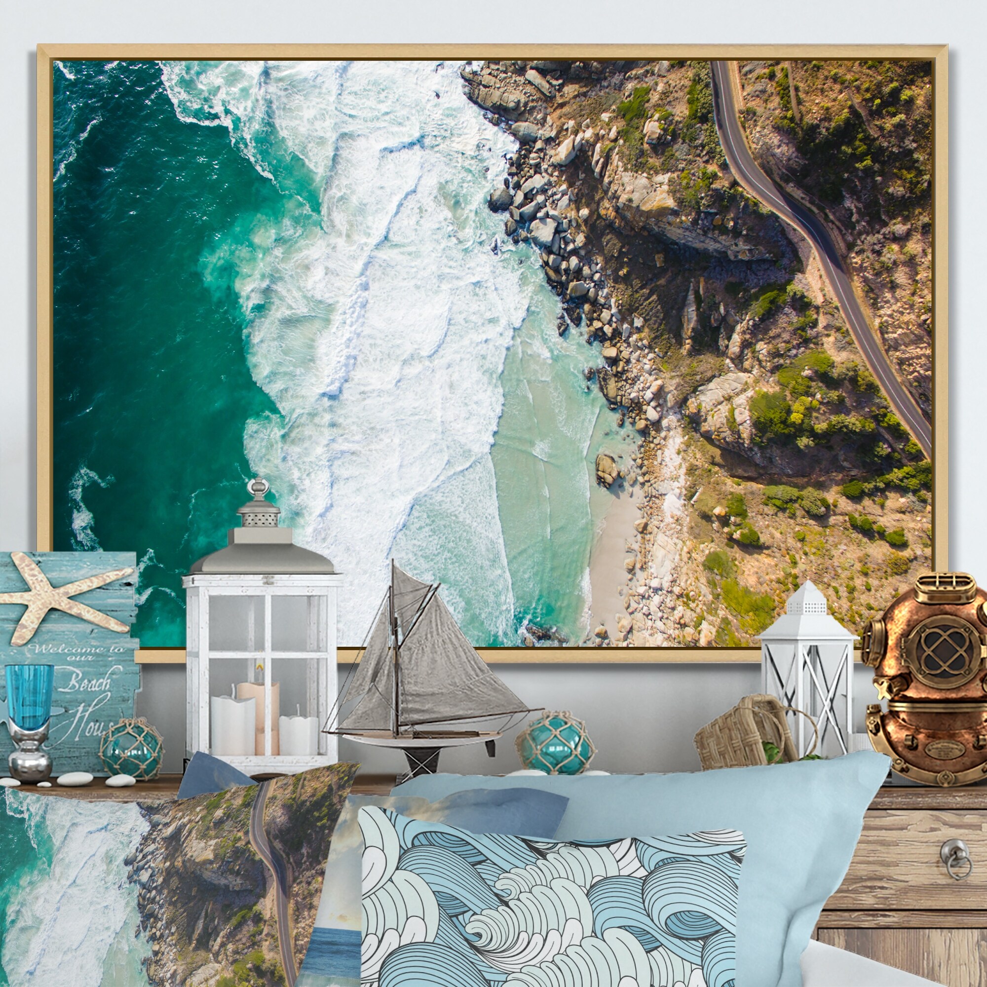 Designart "Ocean Beach Aerial View" Nautical & Coastal Framed Canvas artwork