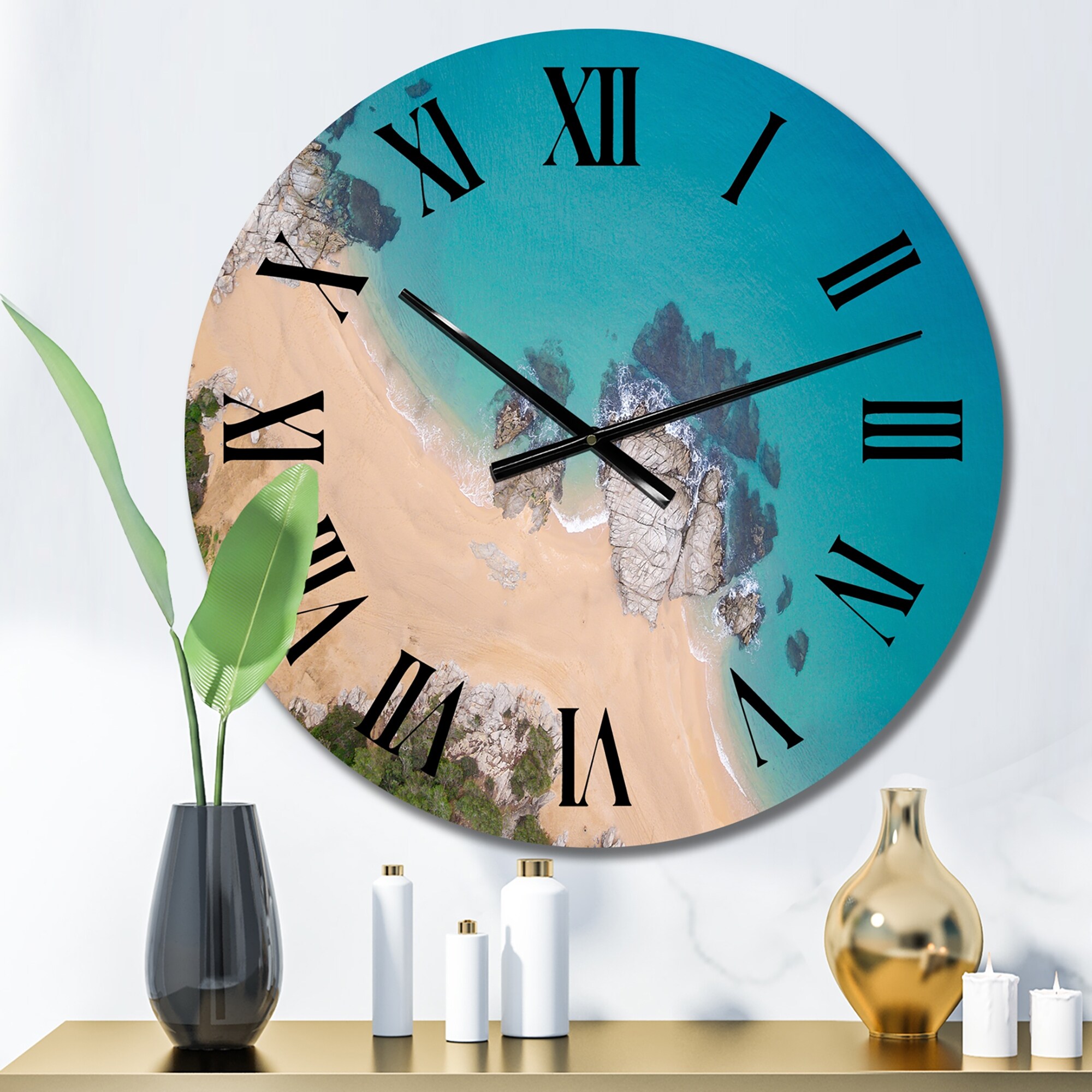 Designart 'Aerial Views of the Rocks in Sea on A Sunny Day' Nautical & Coastal wall clock