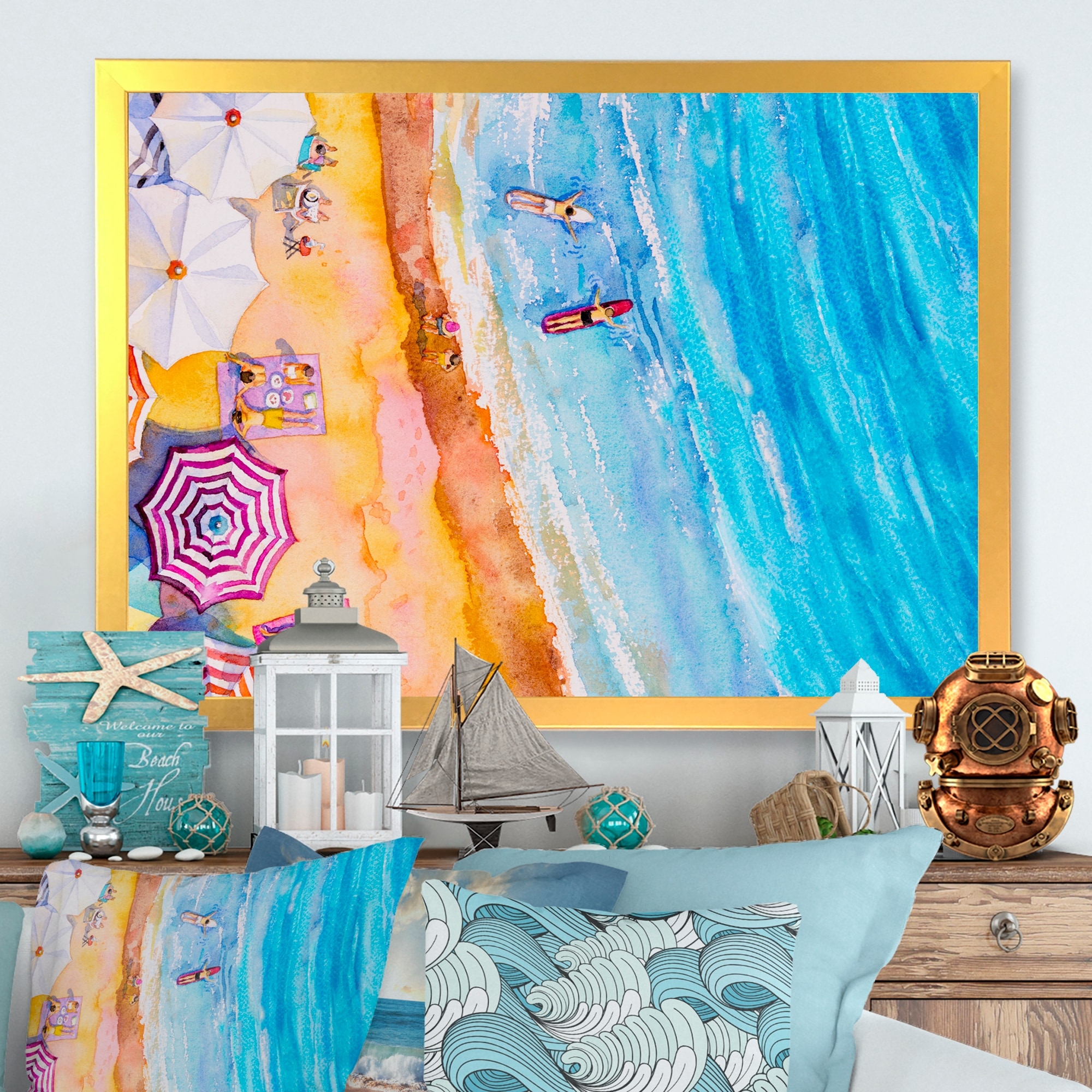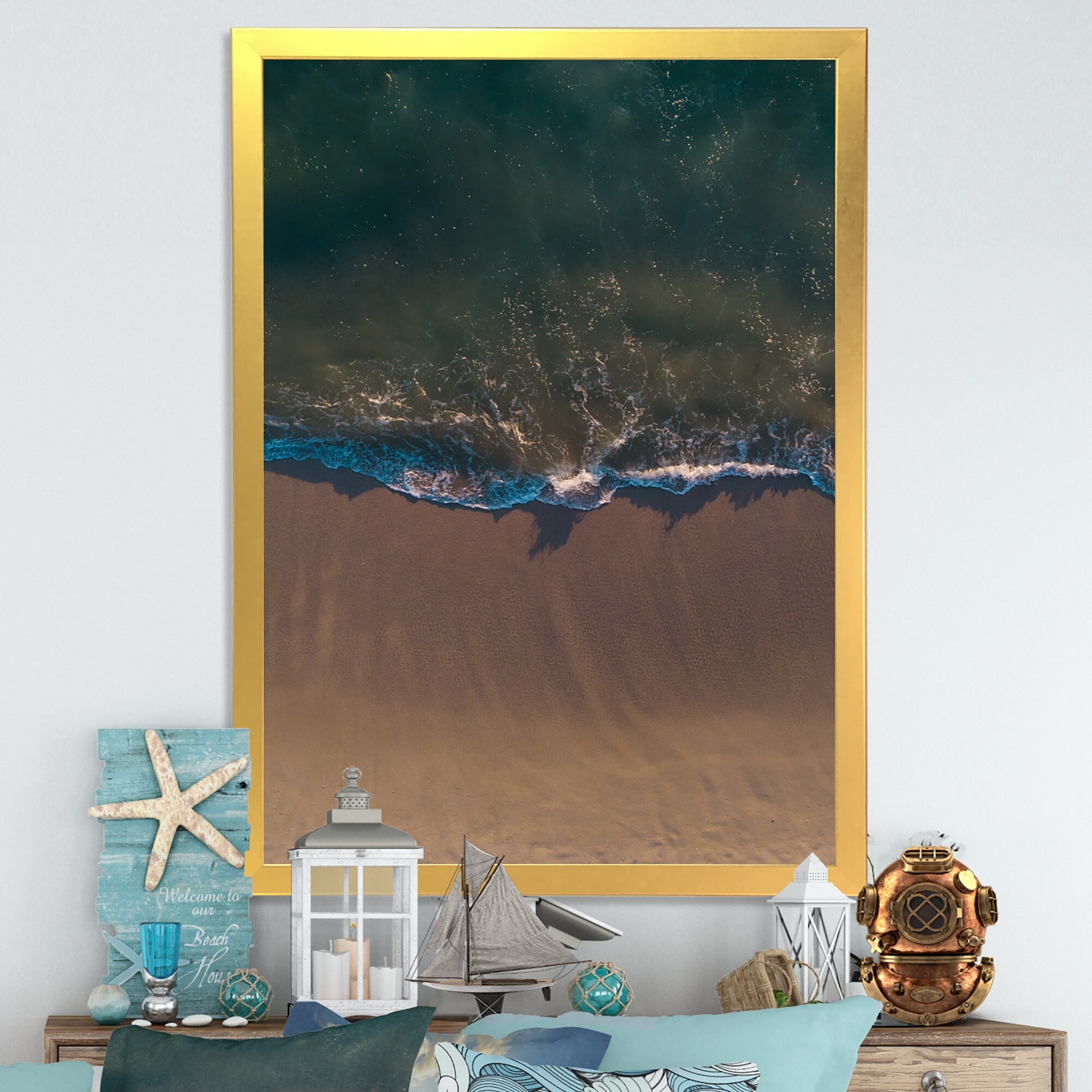 Designart "Ocean Beach Aerial View X" Nautical & Coastal Framed Art Print