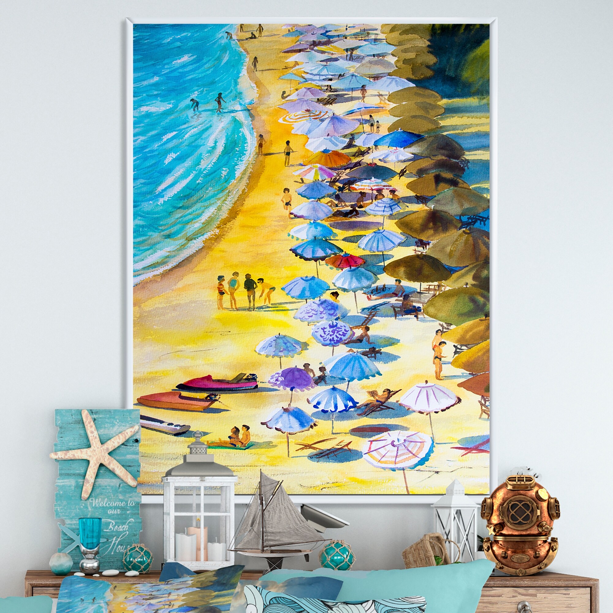 Designart "Ocean Beach Aerial View III" Nautical & Coastal Framed Canvas Wall Art