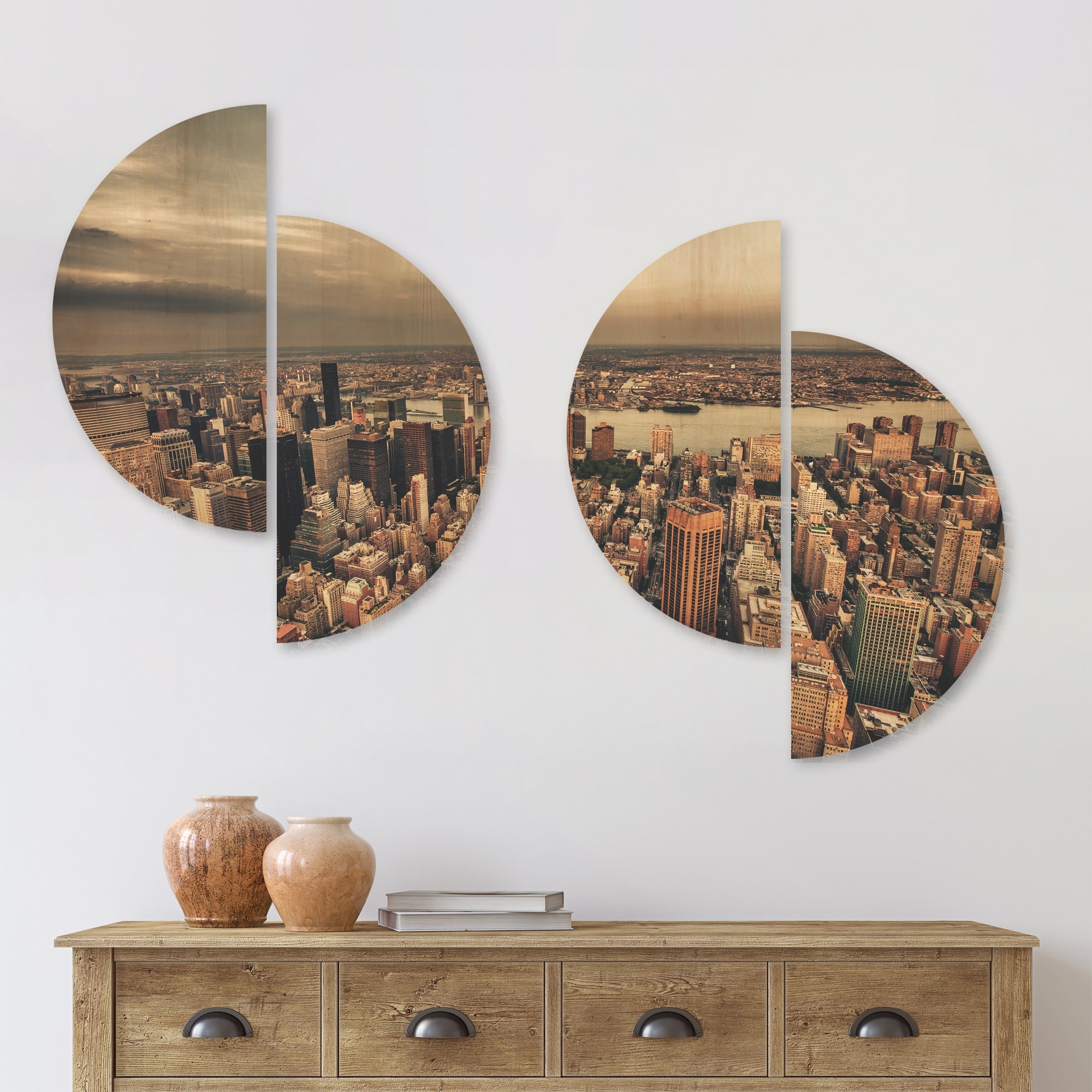 Designart 'Manhattan Skyscrapers Aerial View' Modern Cityscape Wood Wall Art Set of 4 Half Circles