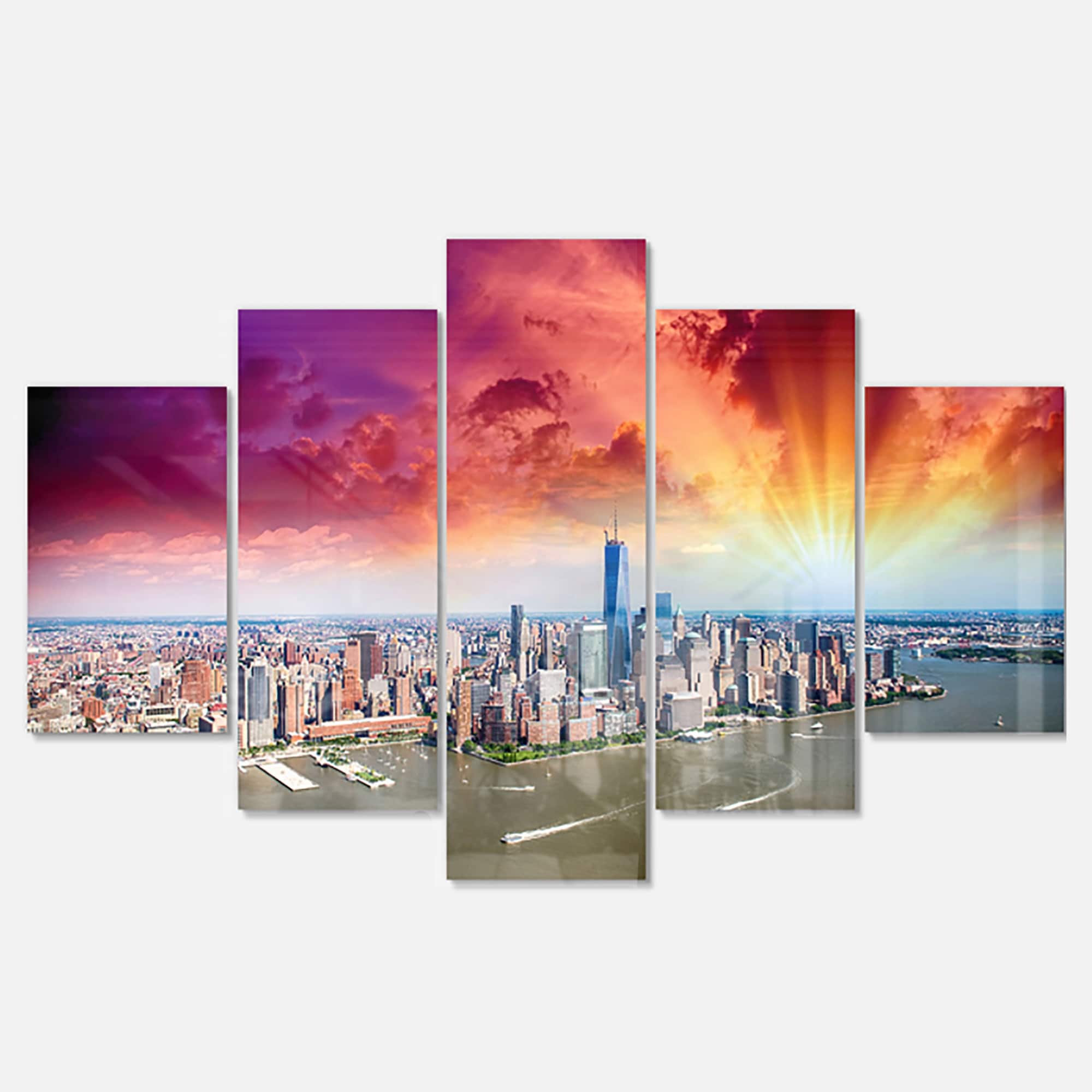 Designart 'Colorful New York Skyline Aerial View' Modern Cityscape Glossy Metal Wall Artwork