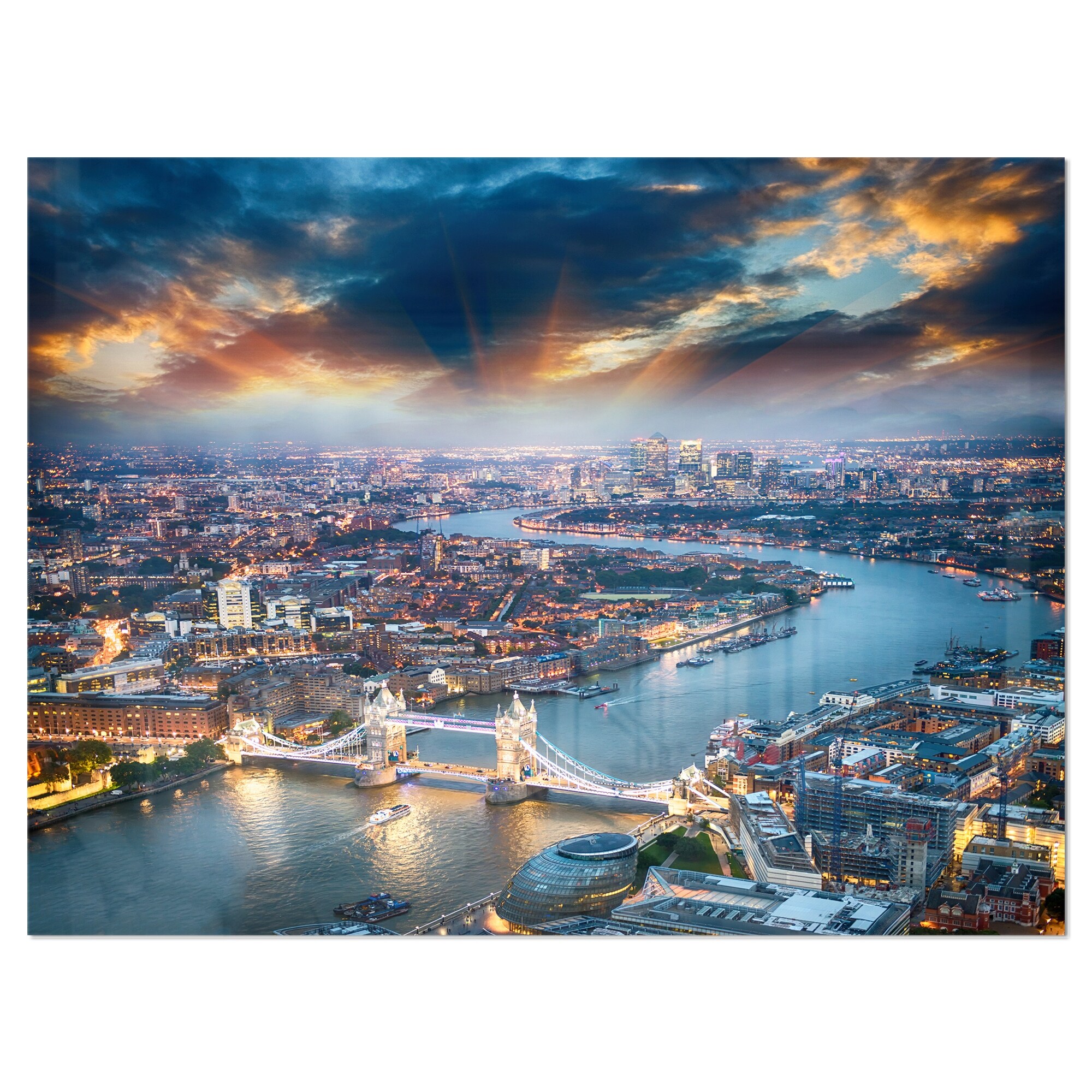 Designart 'Aerial View of London at Dusk' Cityscape Photo Metal Wall Art