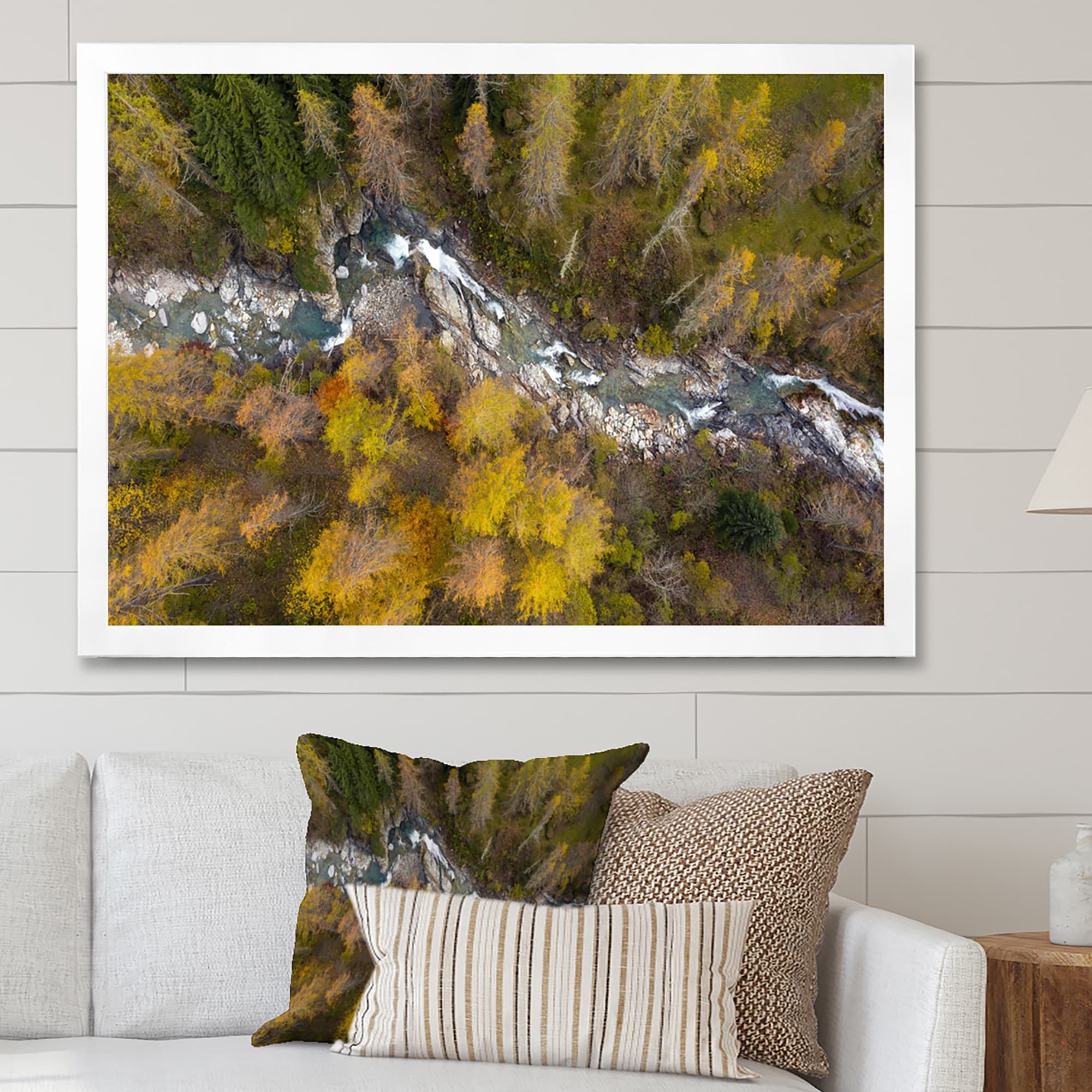Designart "Aerial View Mountains River Autumn" Traditional Framed Art Print